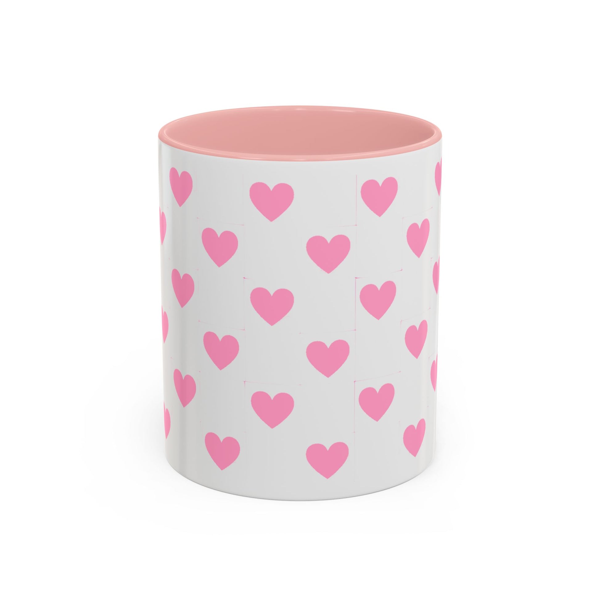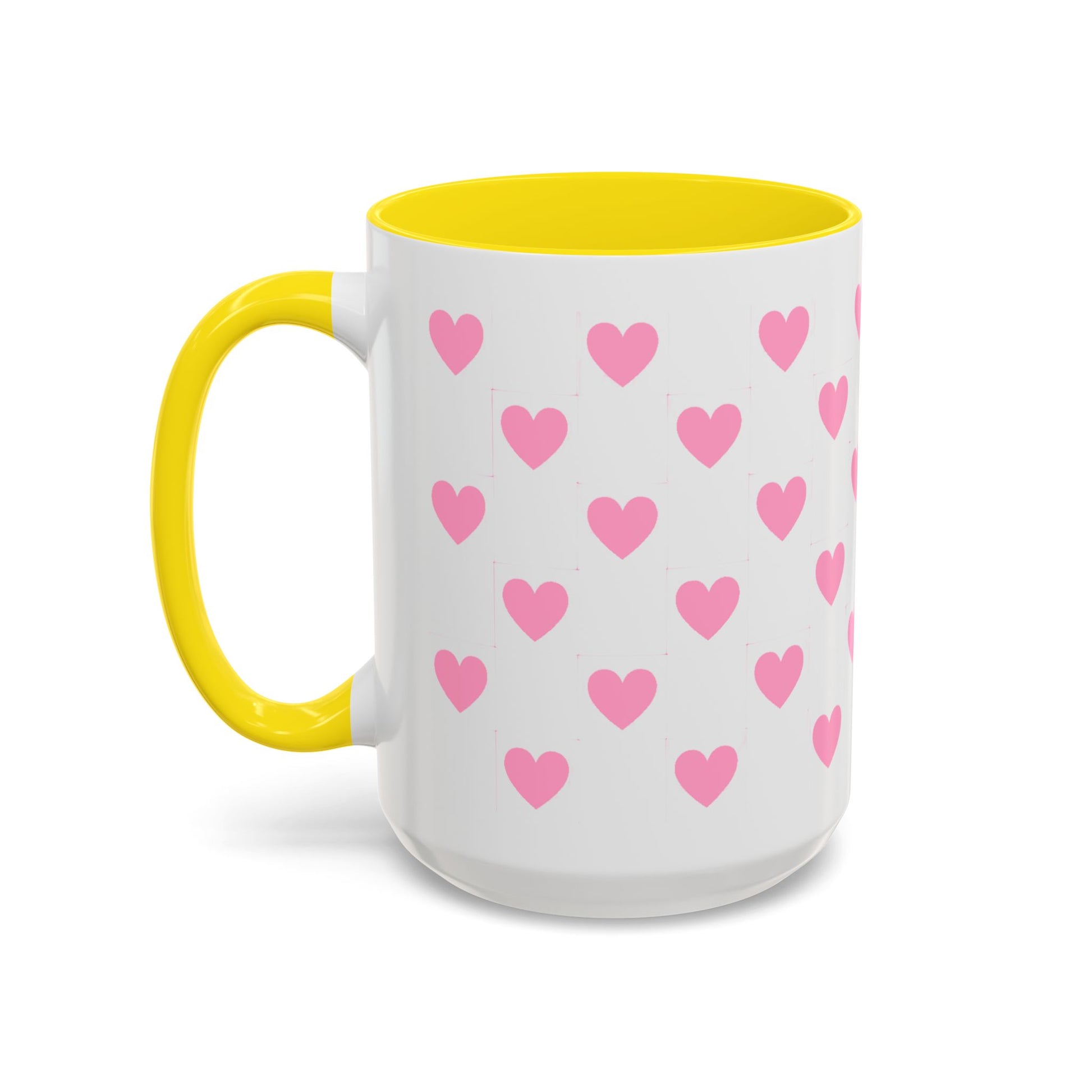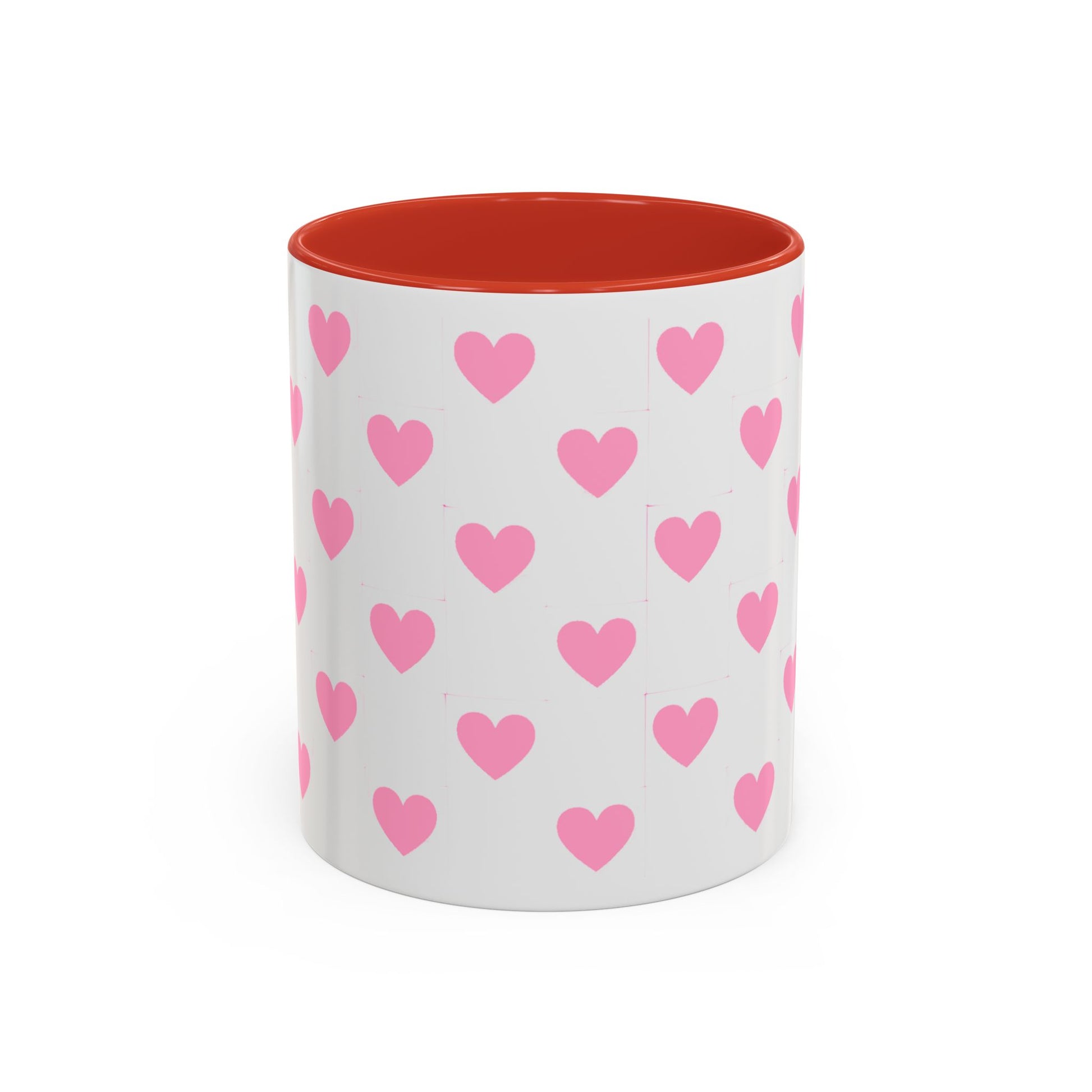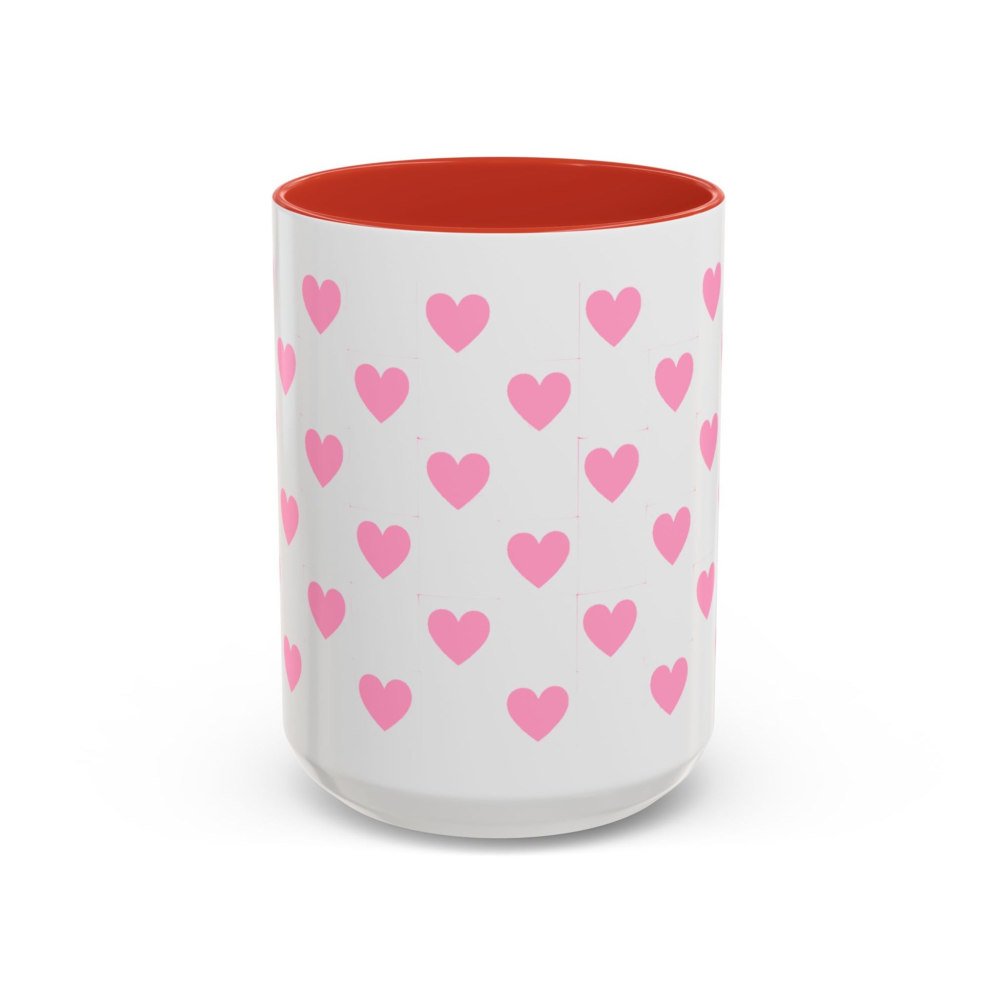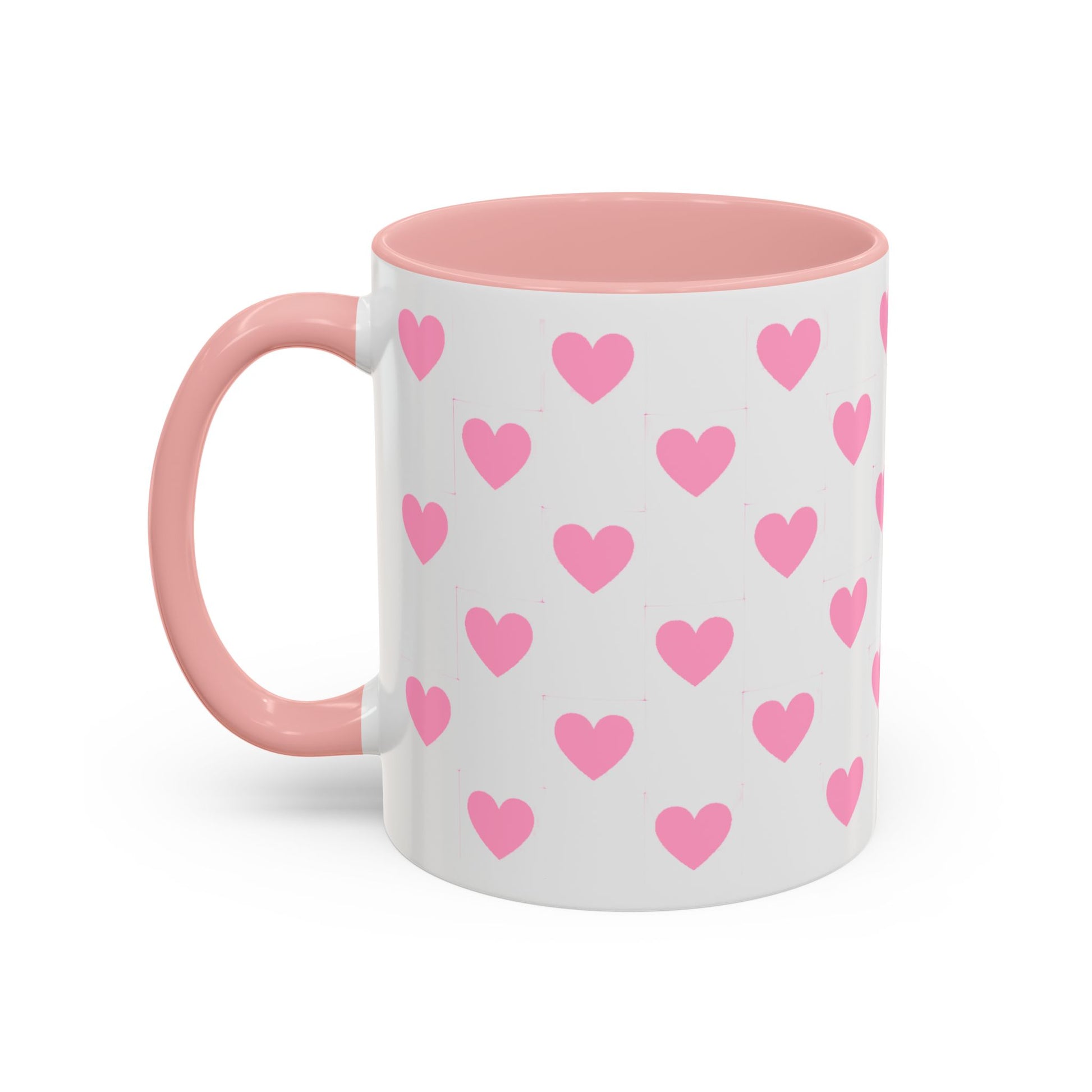 Pink Heart Pattern Accent Coffee Mug – Cute Valentine Tea & Coffee Cup (11/15oz)