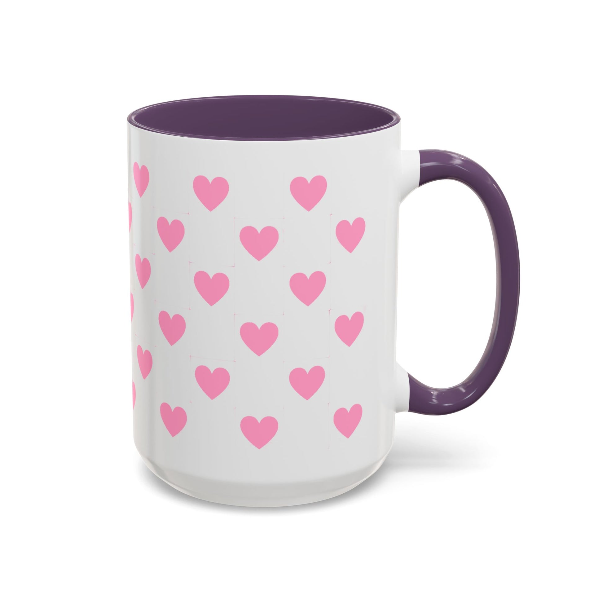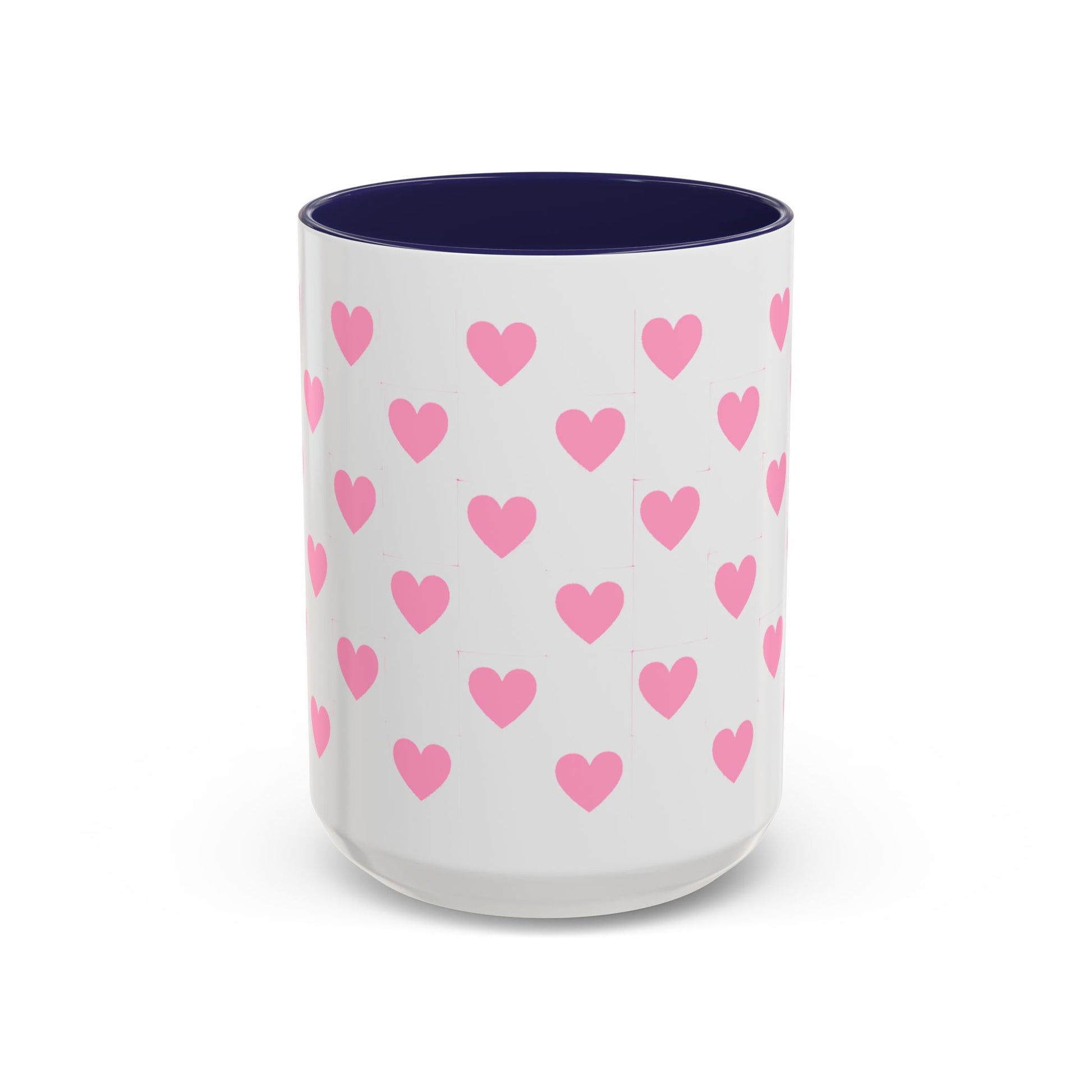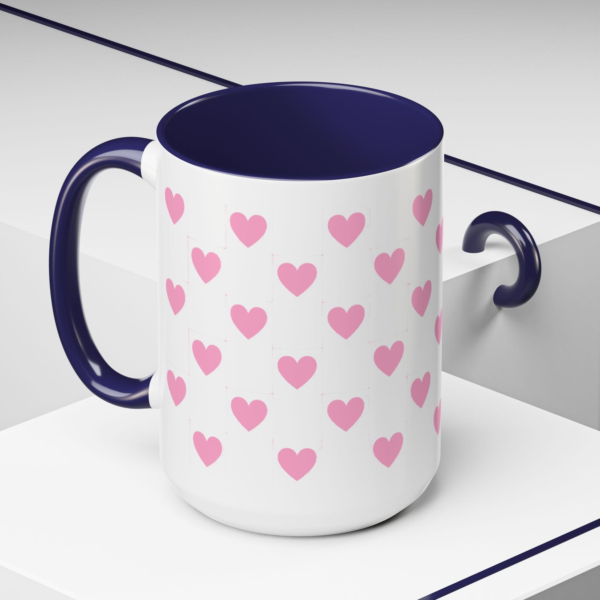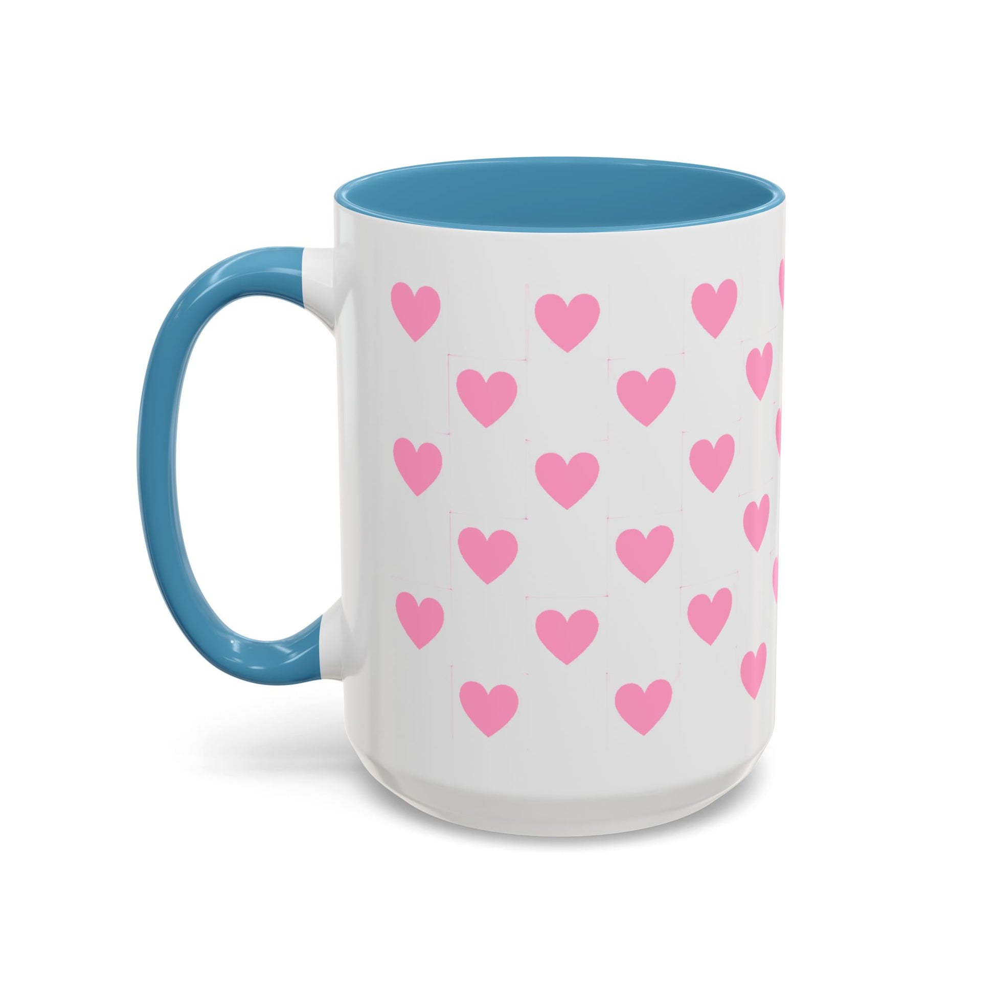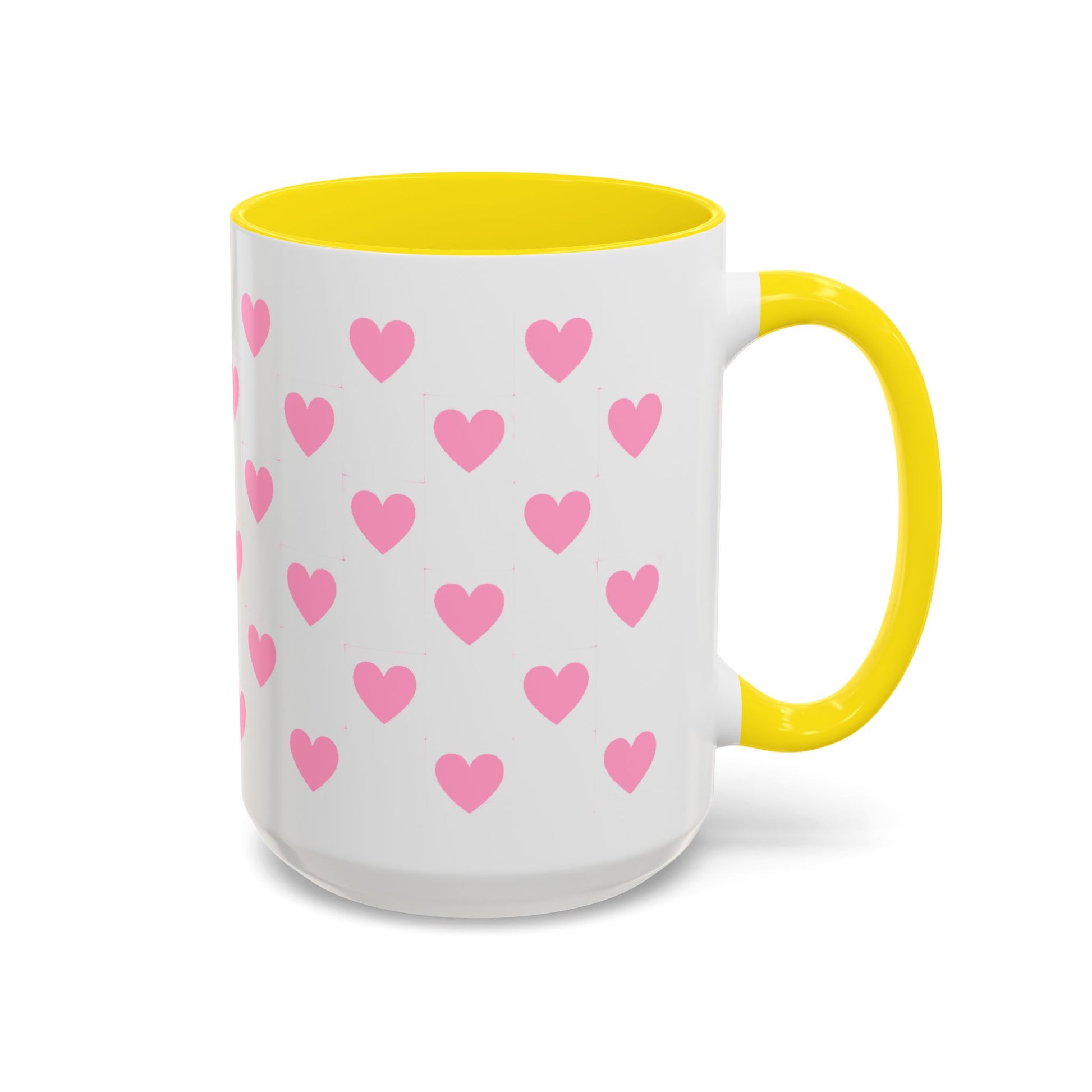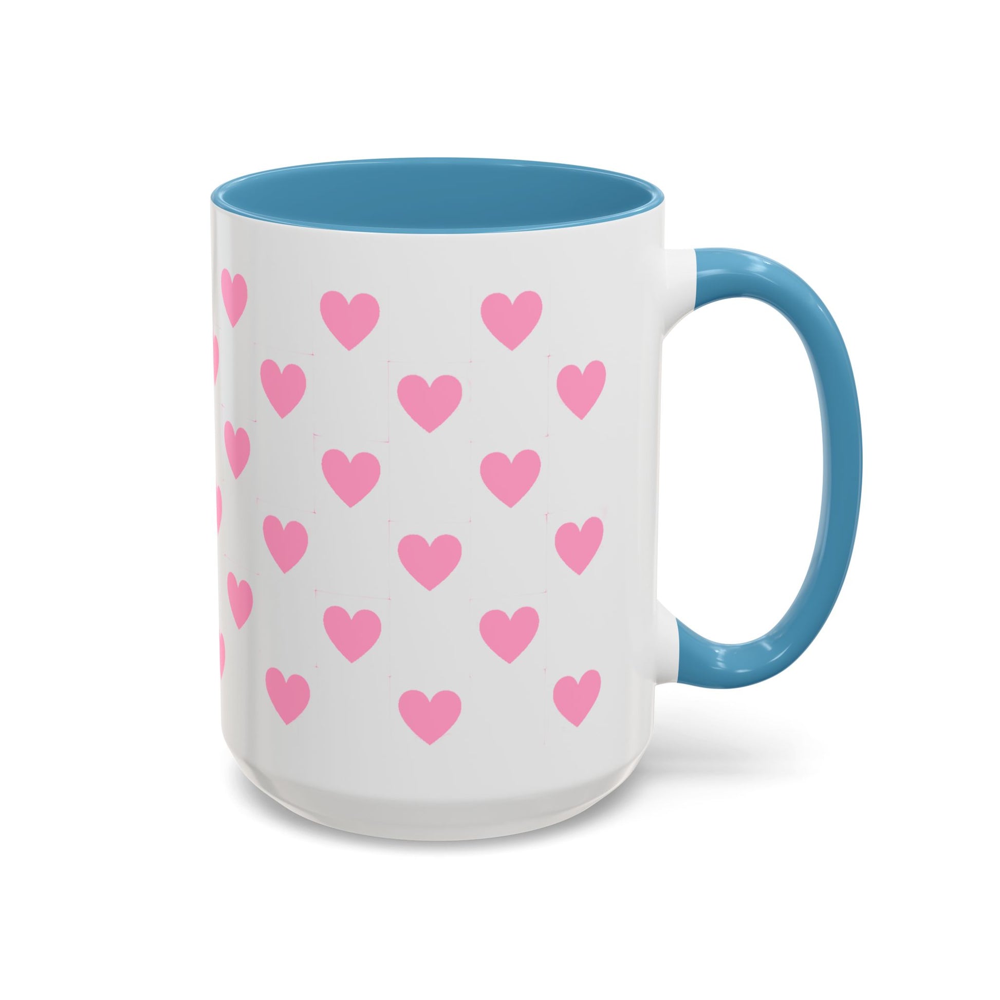 Pink Heart Pattern Accent Coffee Mug – Cute Valentine Tea & Coffee Cup (11/15oz)