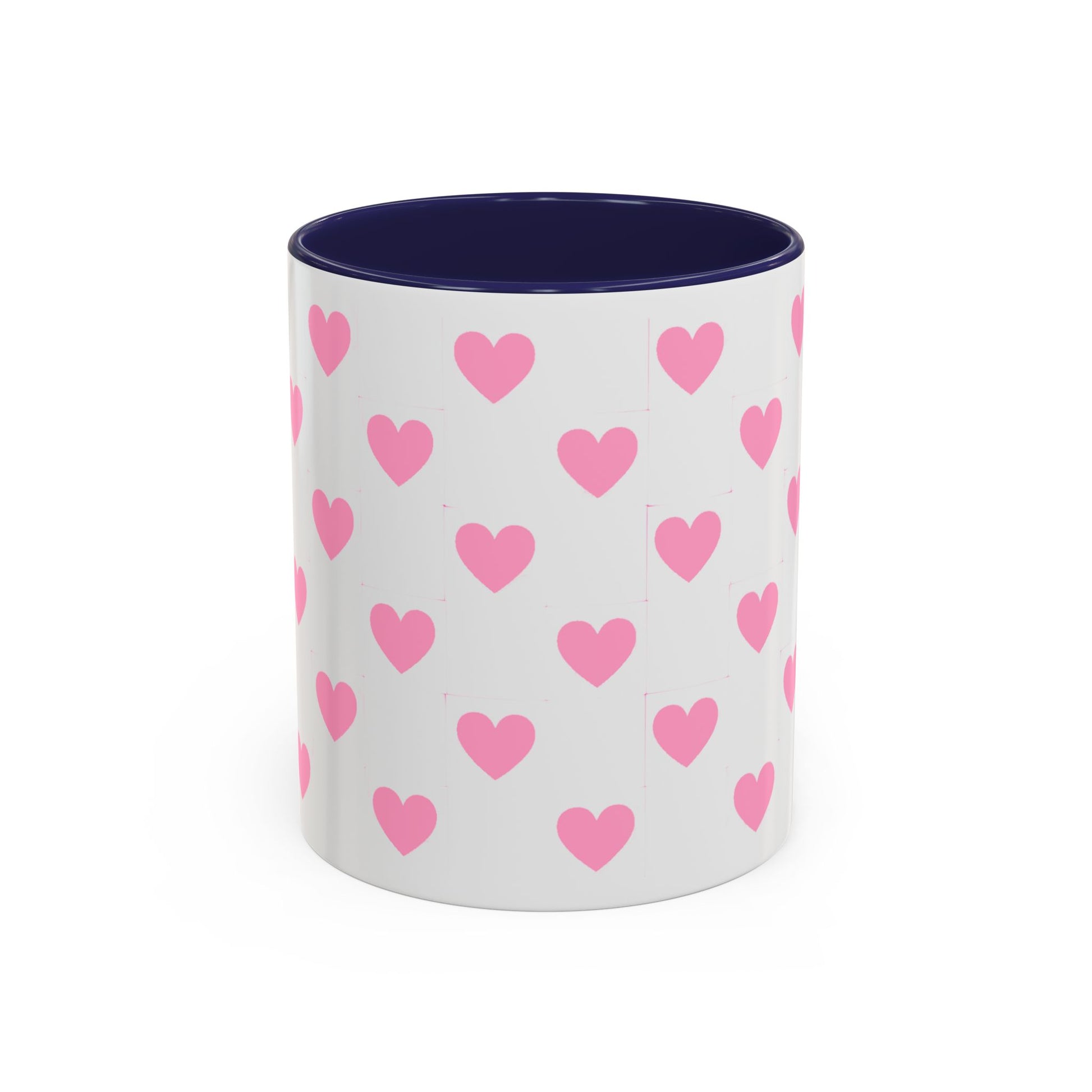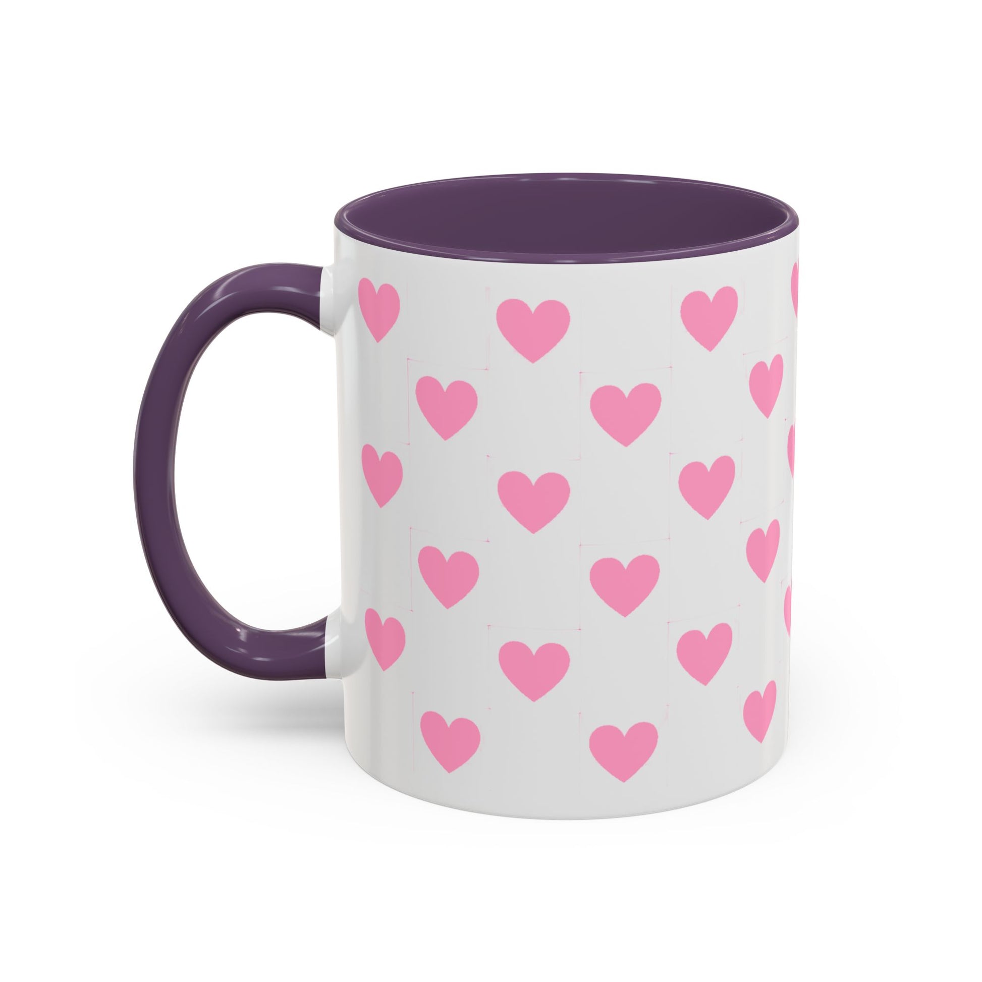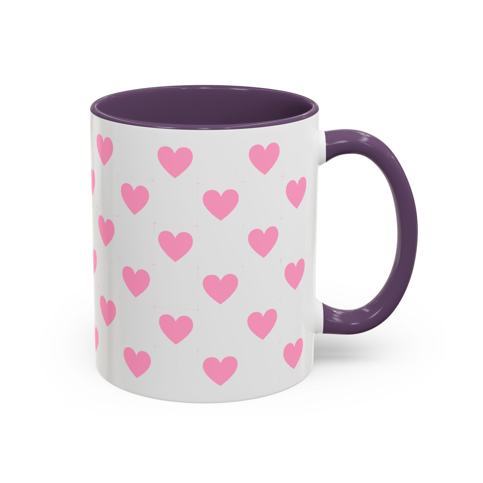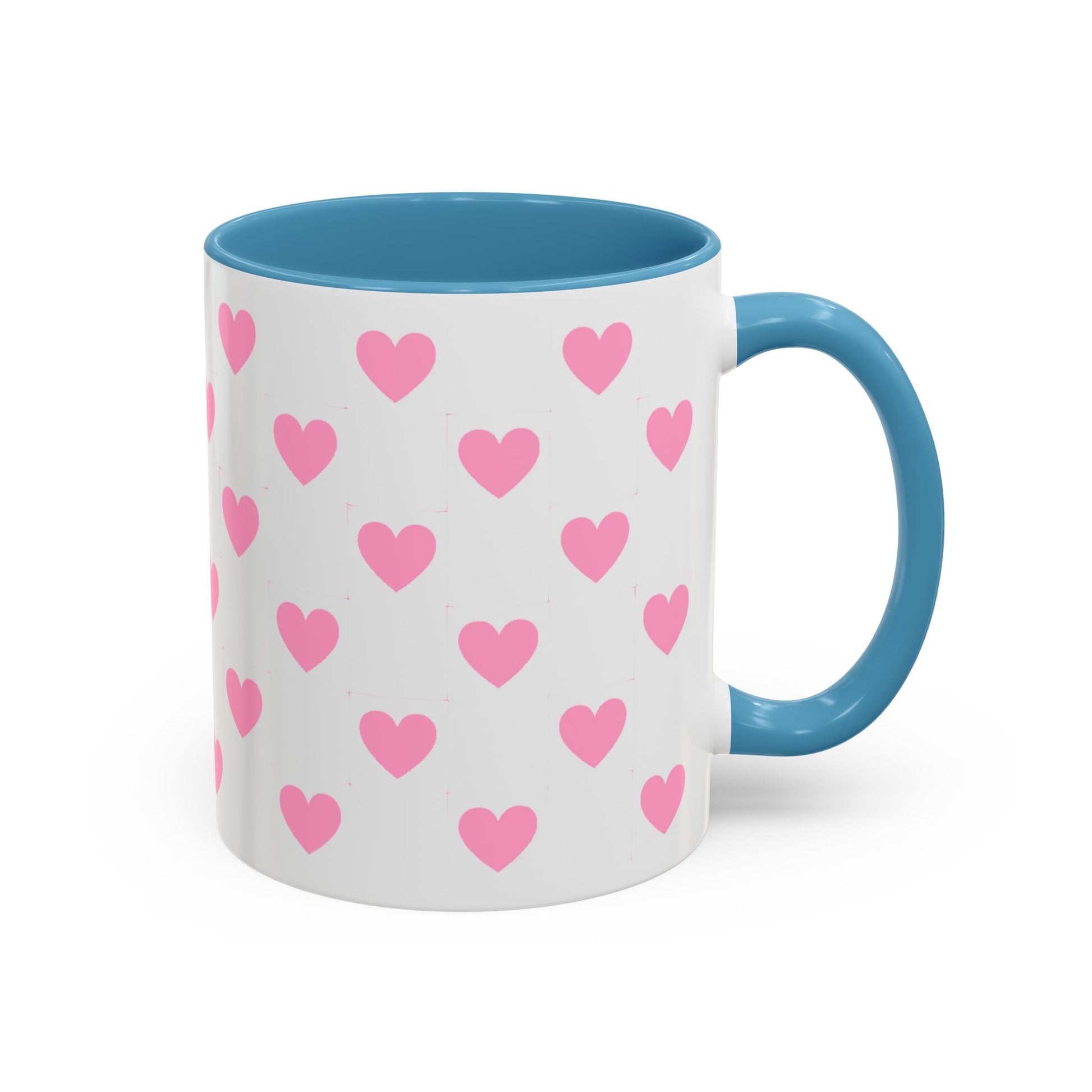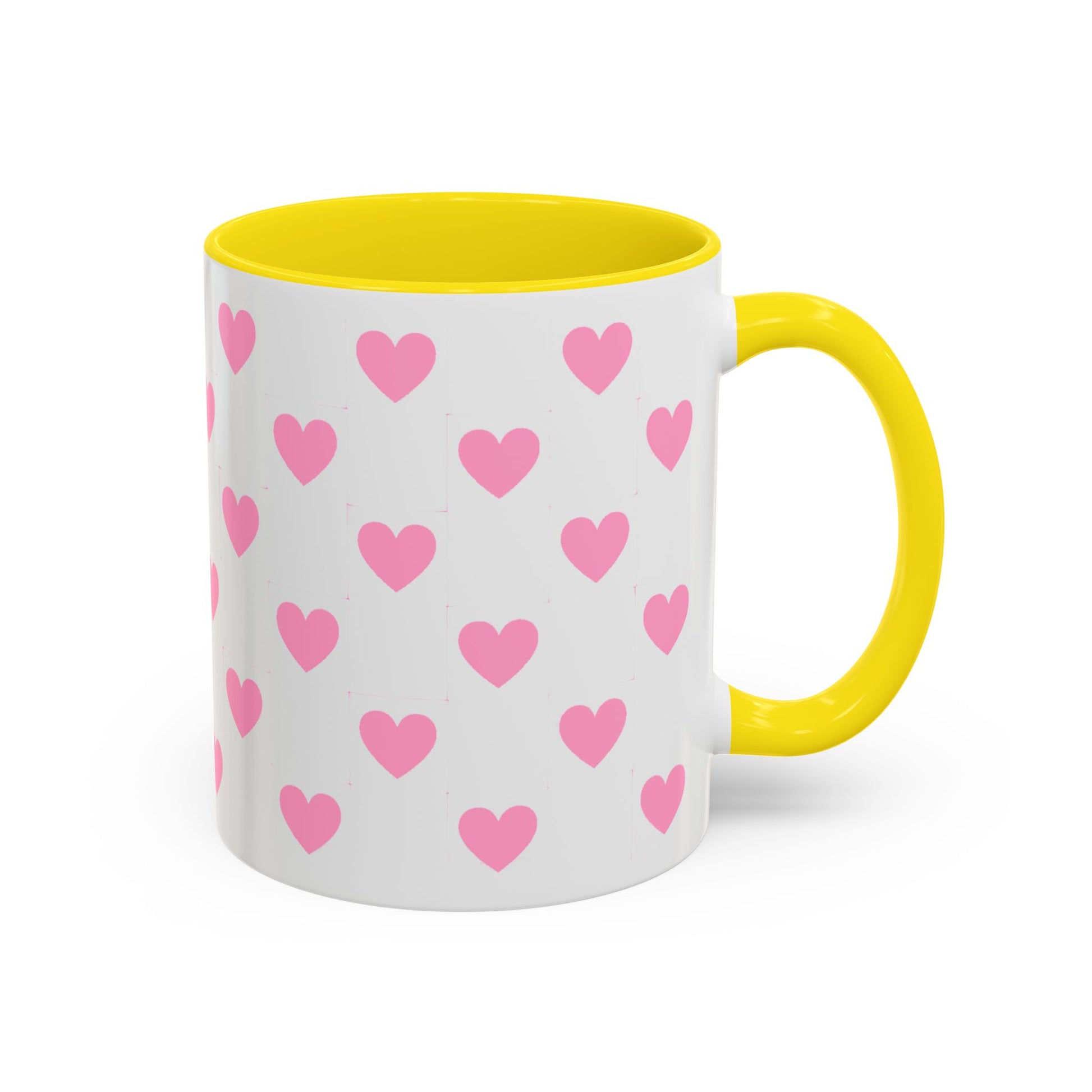 Pink Heart Pattern Accent Coffee Mug – Cute Valentine Tea & Coffee Cup (11/15oz)