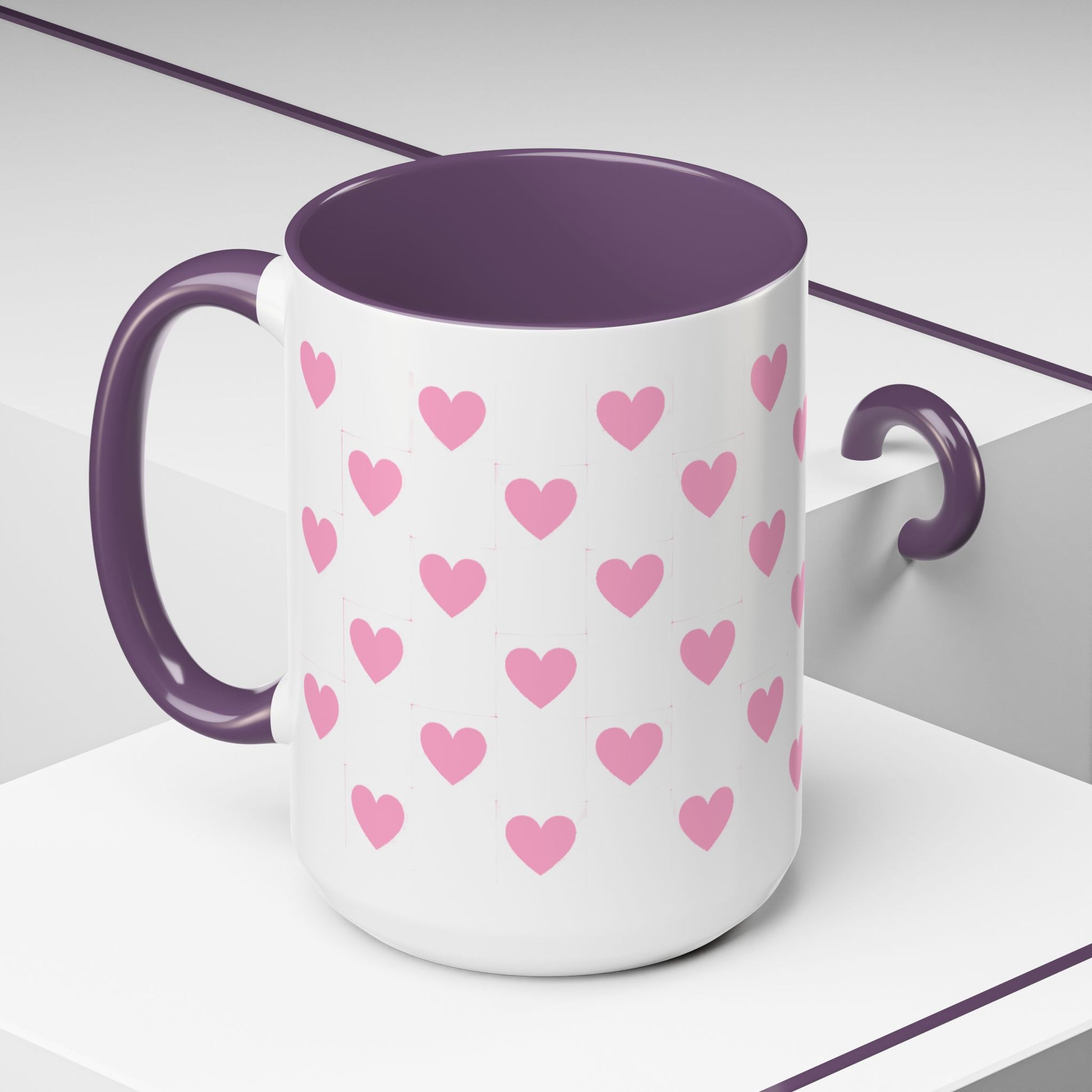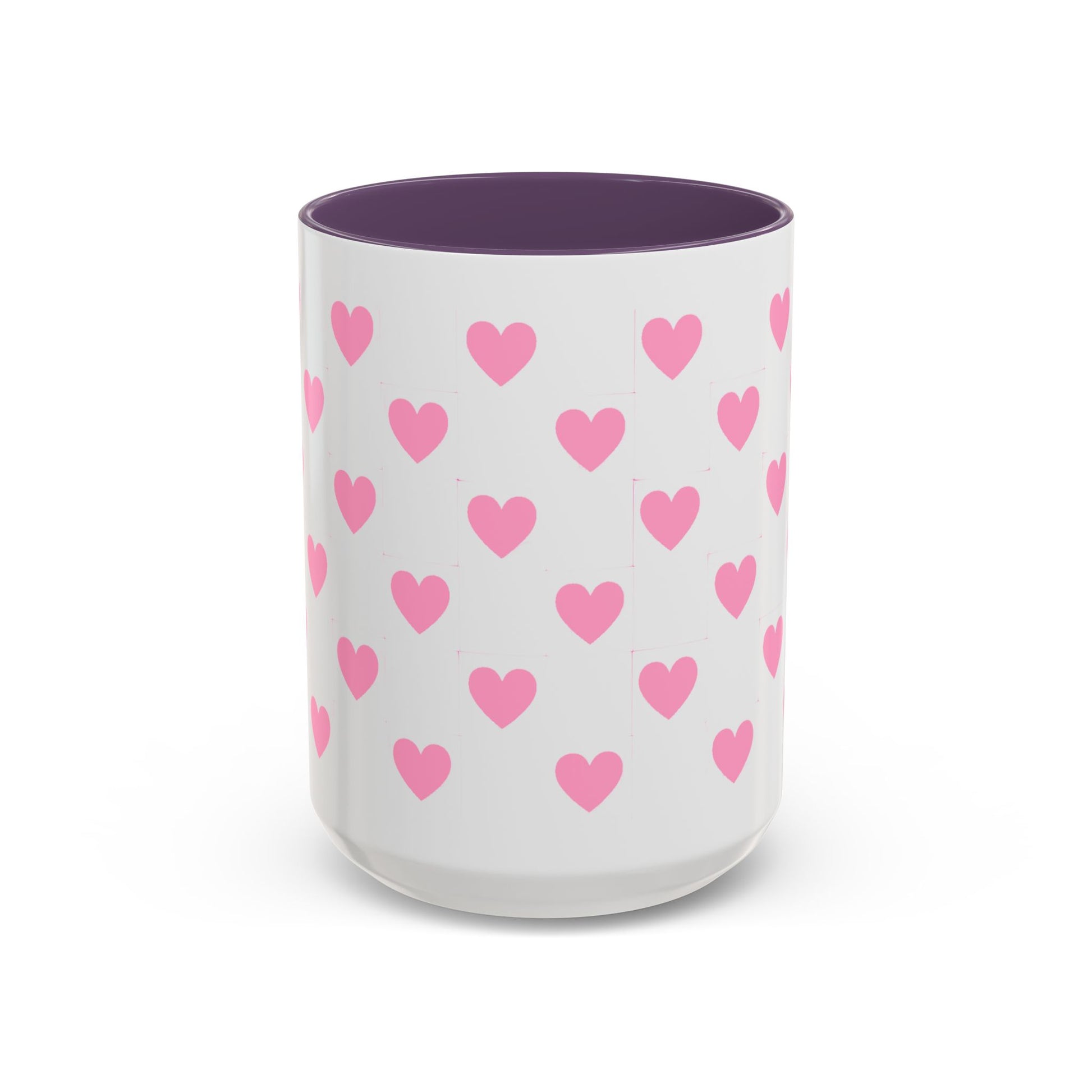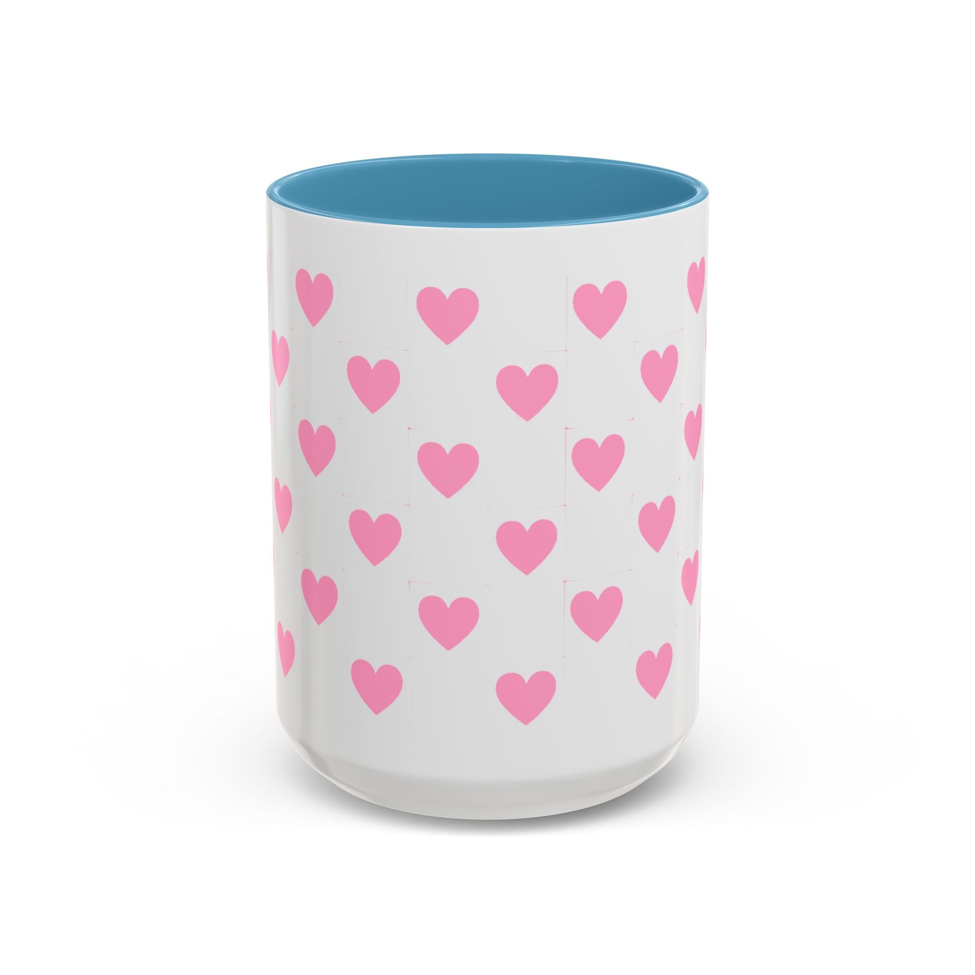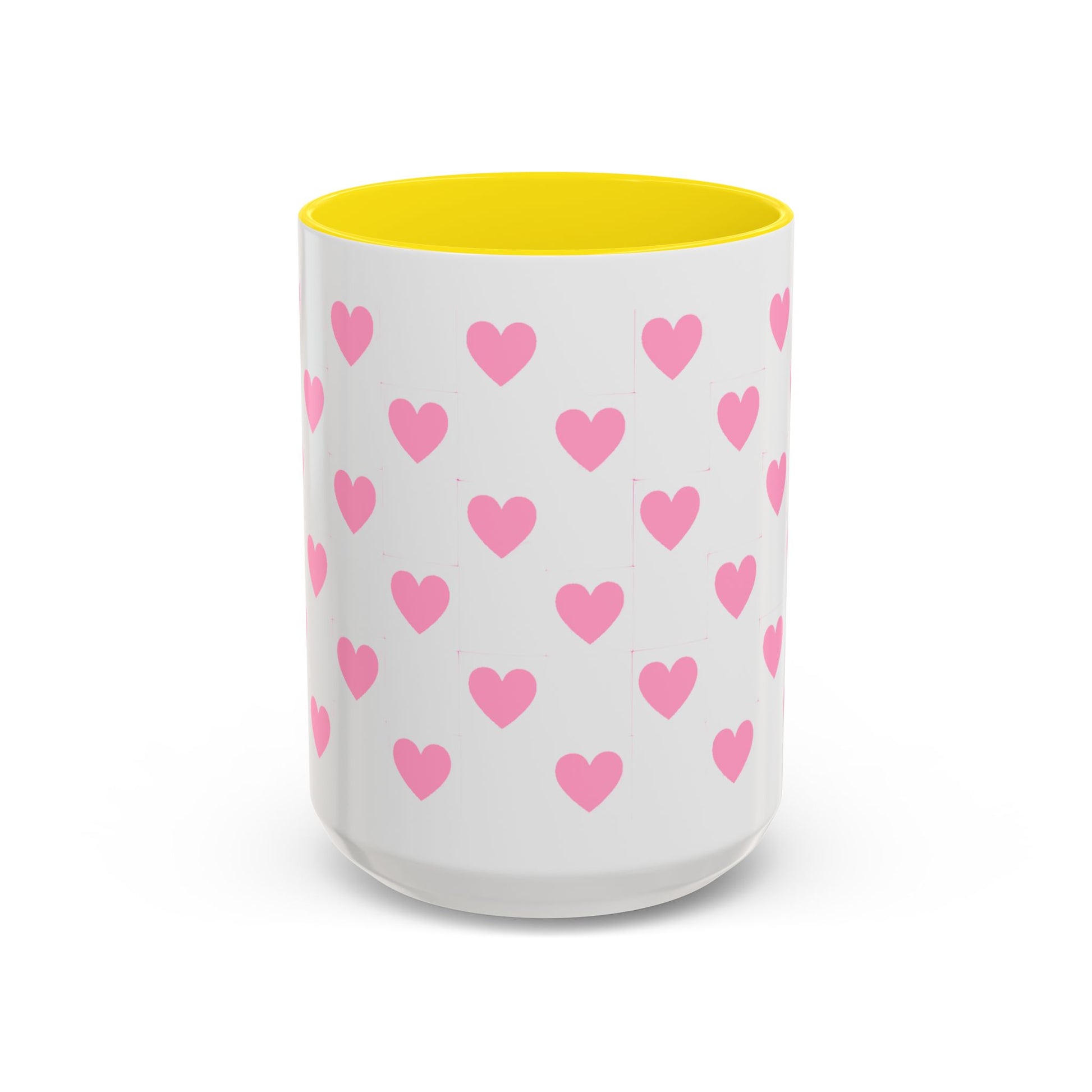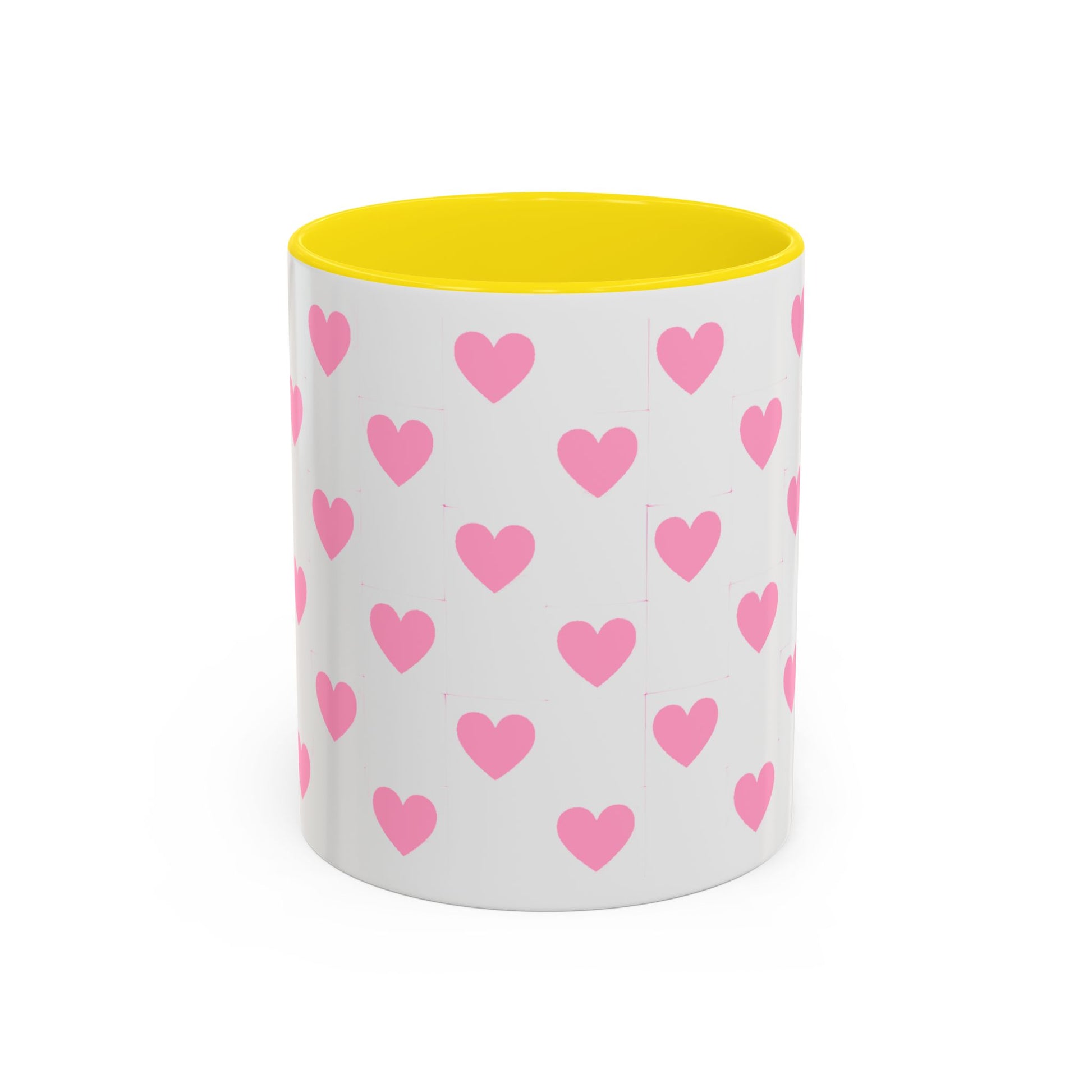 Pink Heart Pattern Accent Coffee Mug – Cute Valentine Tea & Coffee Cup (11/15oz)