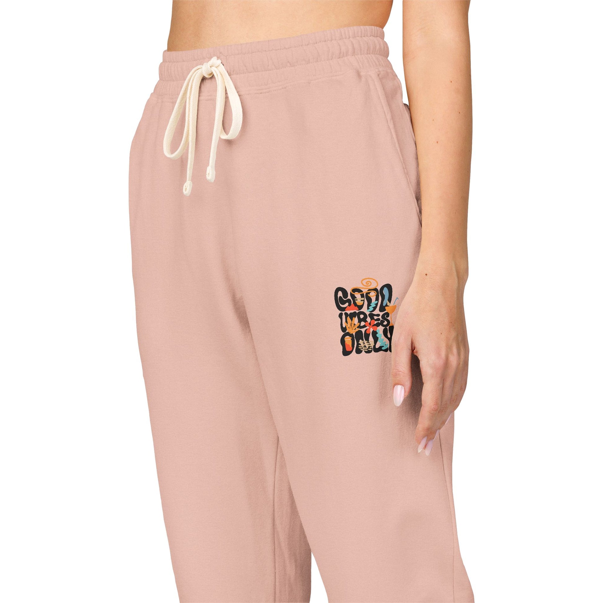 These garment-dyed fleece sweatpants bring quiet, lived-in comfort to your everyday rhythm. The medium-weight ring-spun cotton feels soft against the skin and breaks in beautifully, taking on a subtle, vintage tone from the after-dye process. Cut with a relaxed fit and built-in side seams for structure, they move easily from slow mornings at home to evening walks or low-key hangouts. Small, thoughtful artwork sits near the hip for a hint of personality without shouting. Ethically sourced fabric and membership in the U.S. Cotton Trust Protocol give these sweatpants a grounded, responsible feel.