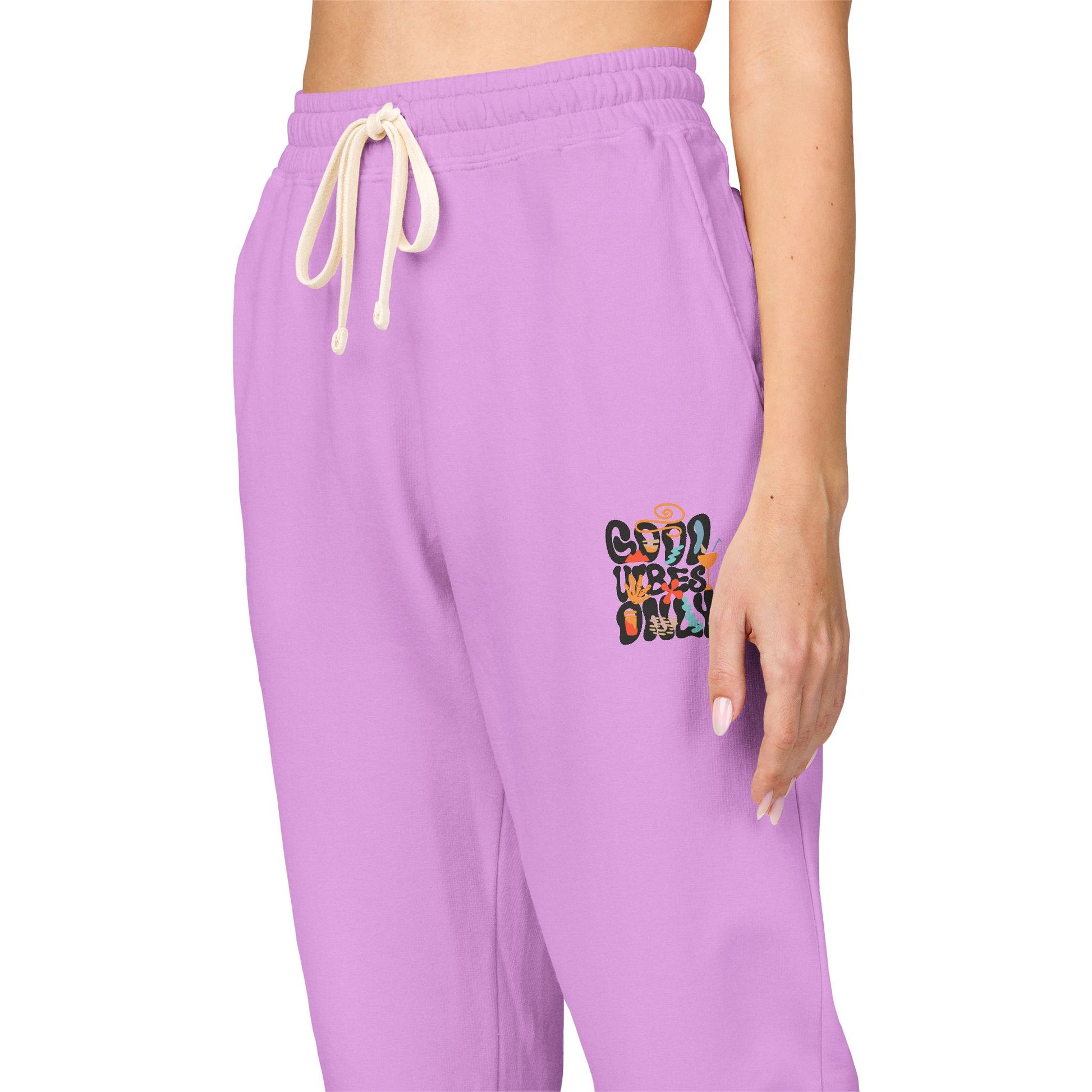 Retro Floral Bear Sweatpants — Garment-Dyed Fleece Joggers