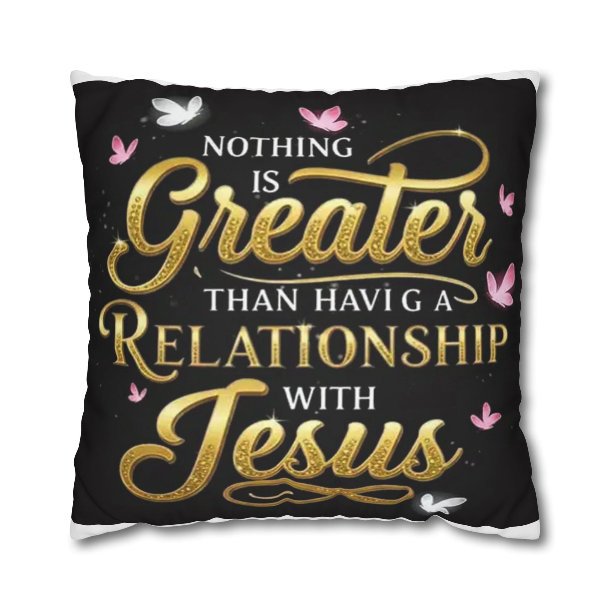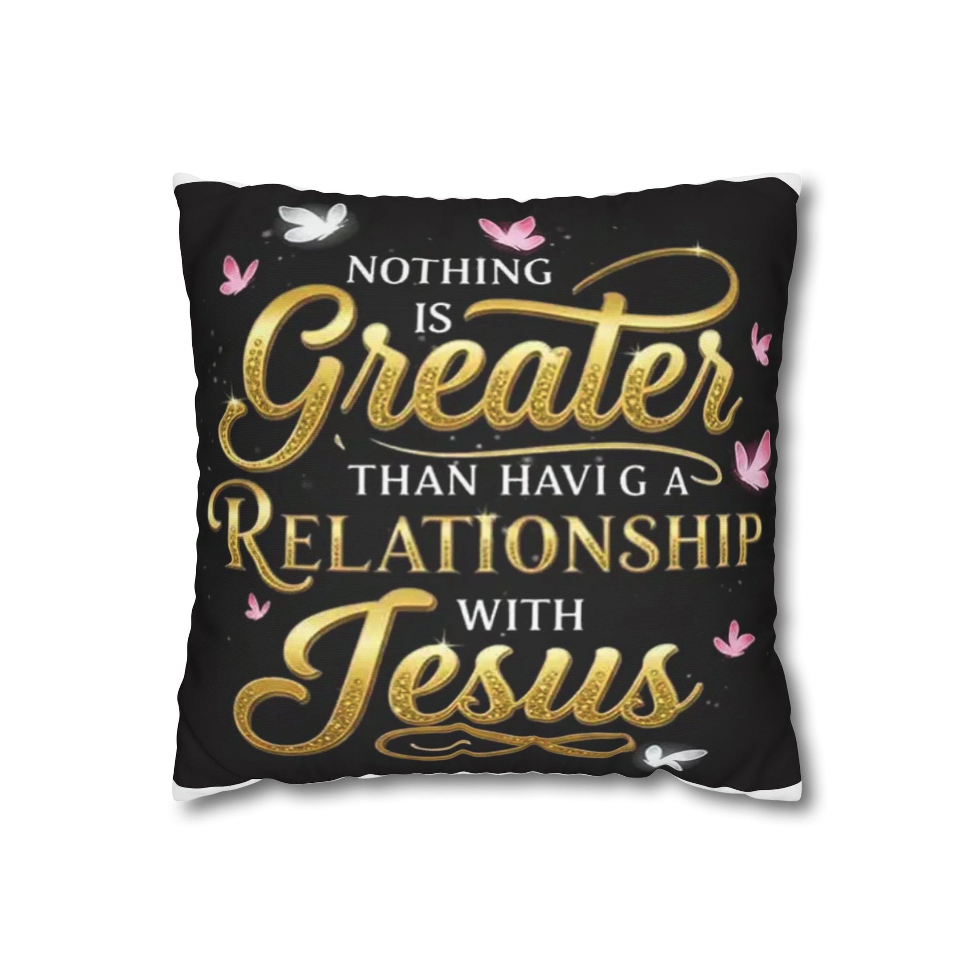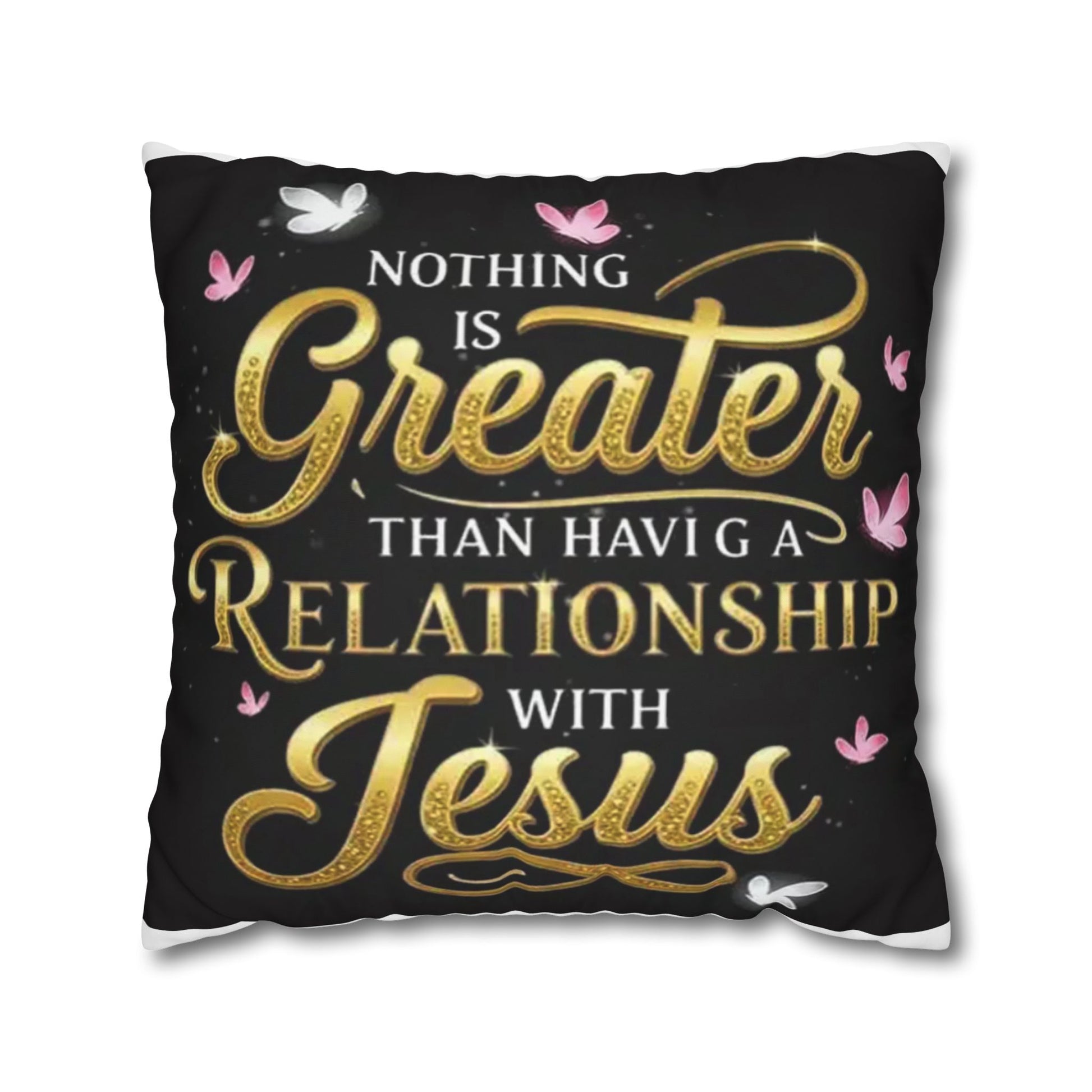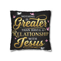 Square Pillowcase — "Nothing Is Greater Than Having a Relationship with Jesus" Inspirational Christian Throw Pillow Cover