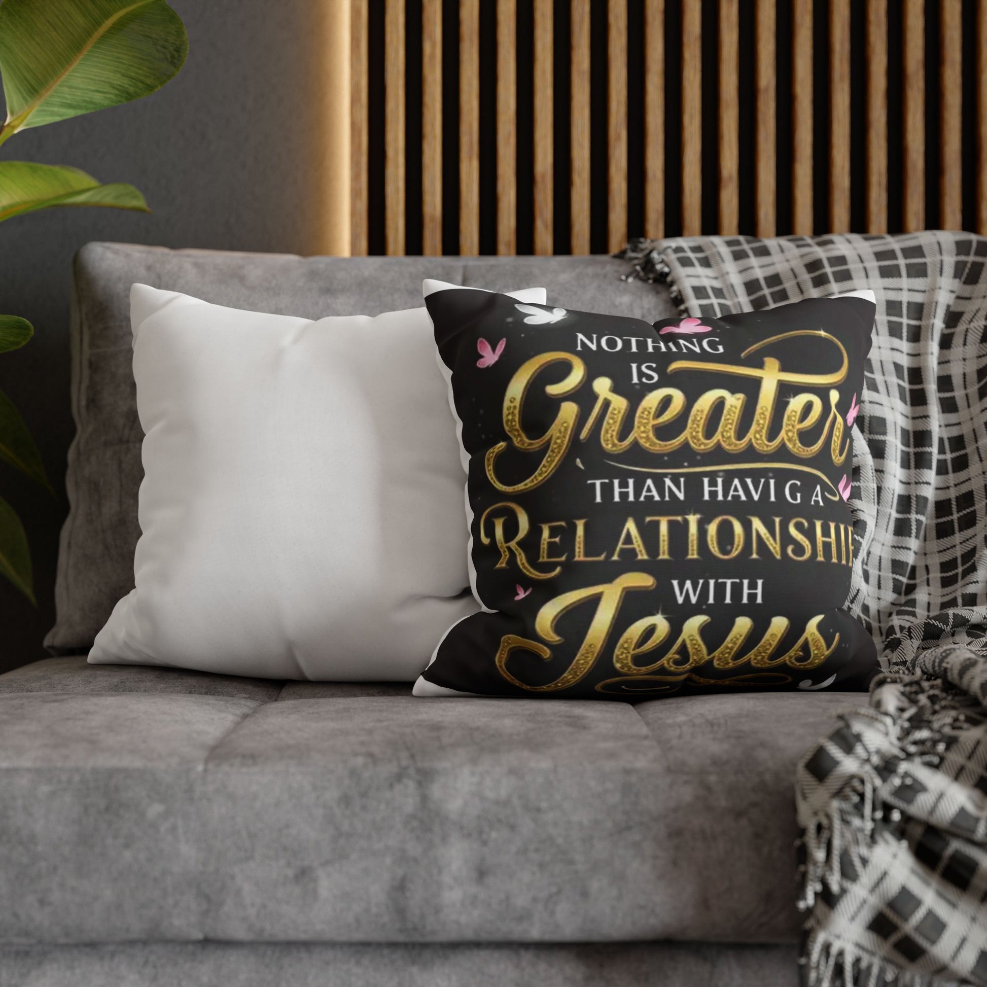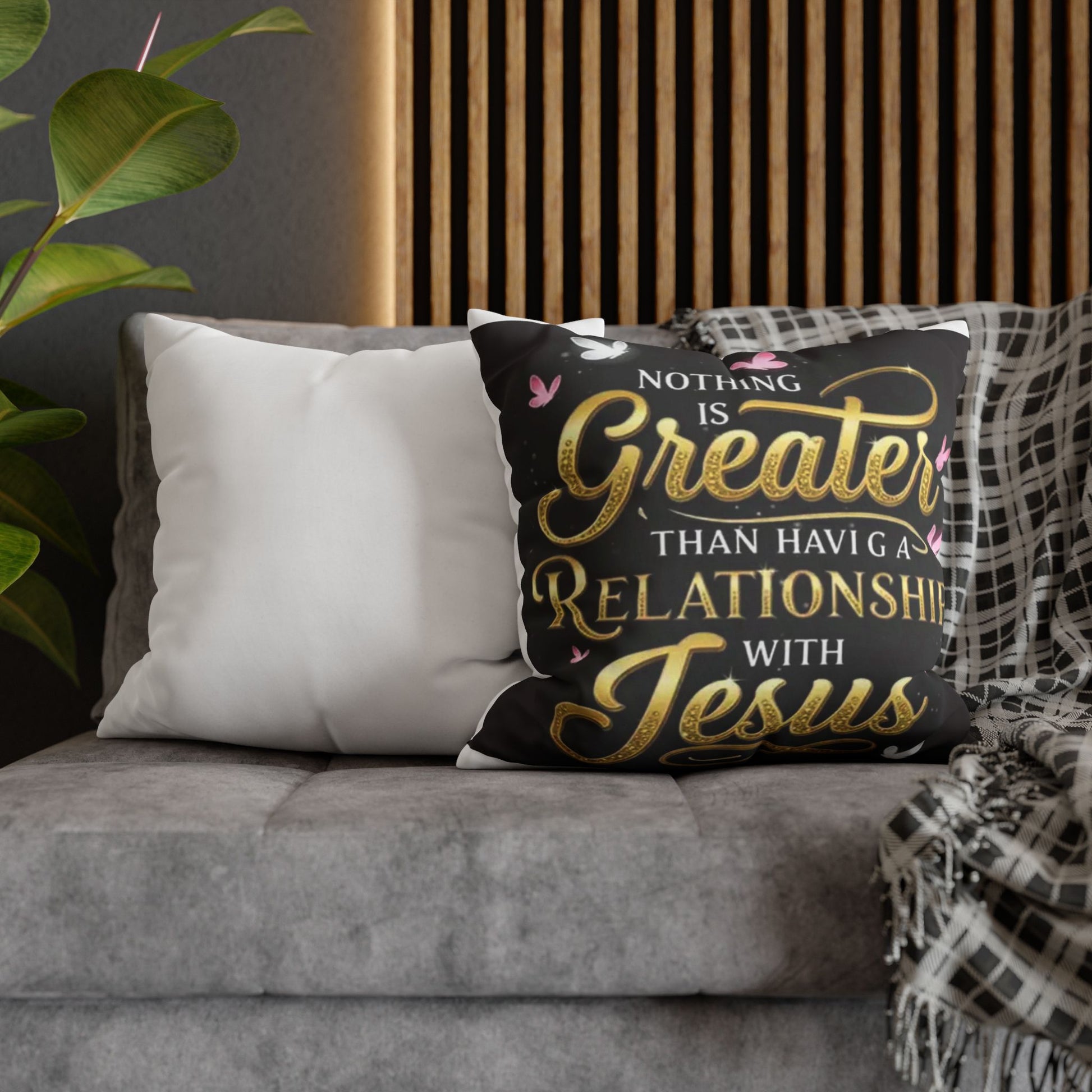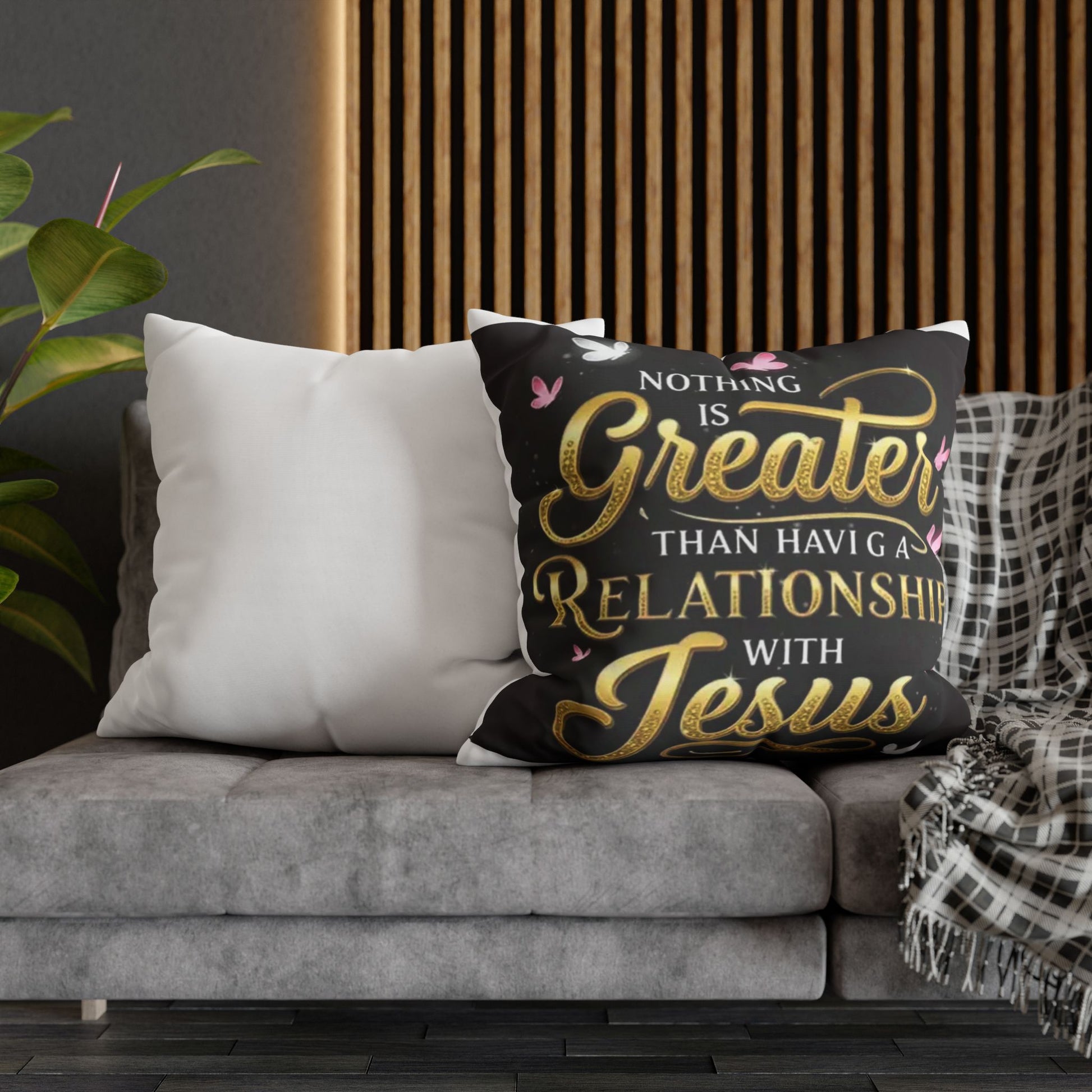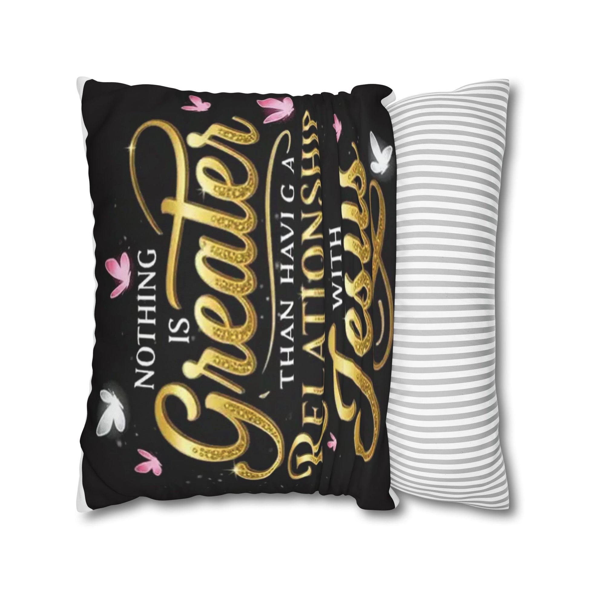 Square Pillowcase — "Nothing Is Greater Than Having a Relationship with Jesus" Inspirational Christian Throw Pillow Cover