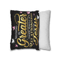 A soft, decorative square pillowcase that brings faith-forward warmth to sofas, reading nooks, and bedroom corners. The double-sided canvas showcases a bold, gold-lettered message on a deep black background, accented with delicate pink petals and white doves — a quiet reminder of devotion that reads like a treasured keepsake. The fine-weave polyester canvas feels smooth to the touch, while vibrant printing keeps the lettering and accents crisp for everyday display. The concealed metal zipper keeps the look seamless and makes inserting or removing your pillow easy. Use this pillowcase to add a reflective, comforting touch to a living room chair, prayer corner, or bedside vignette.