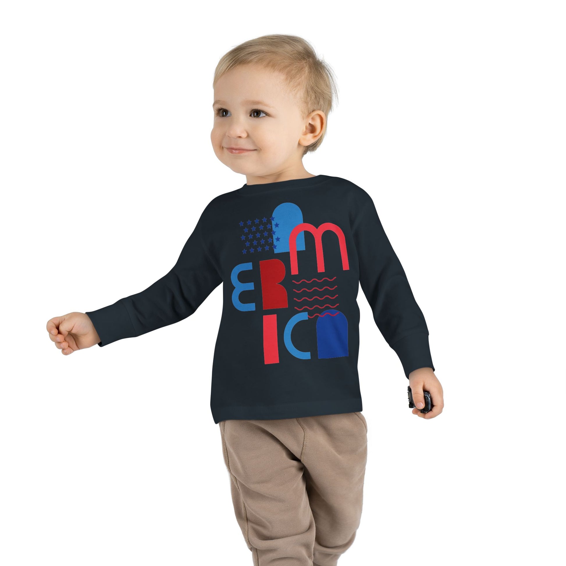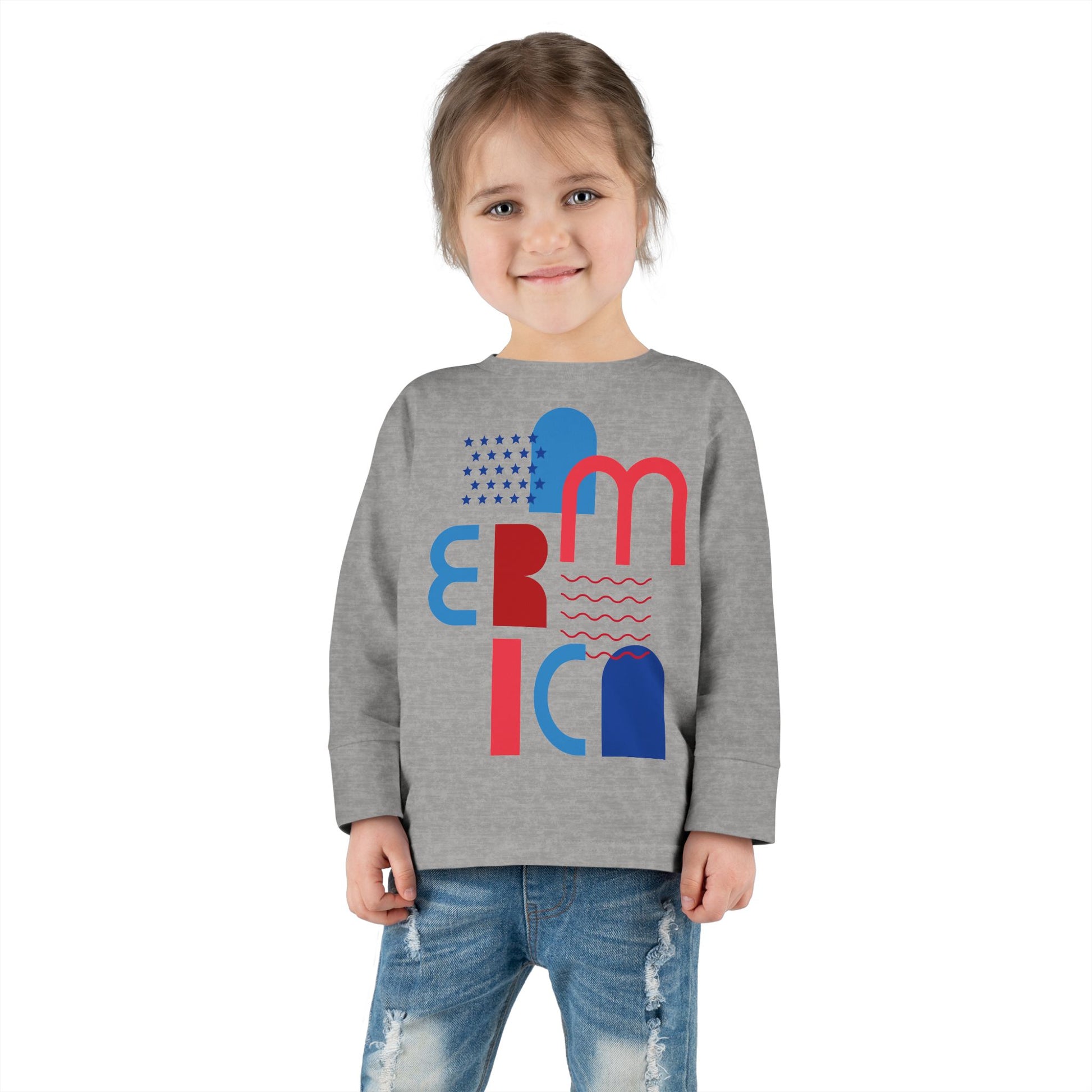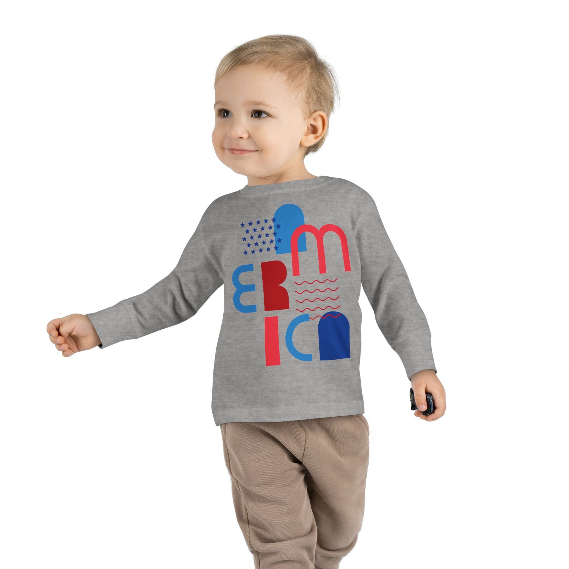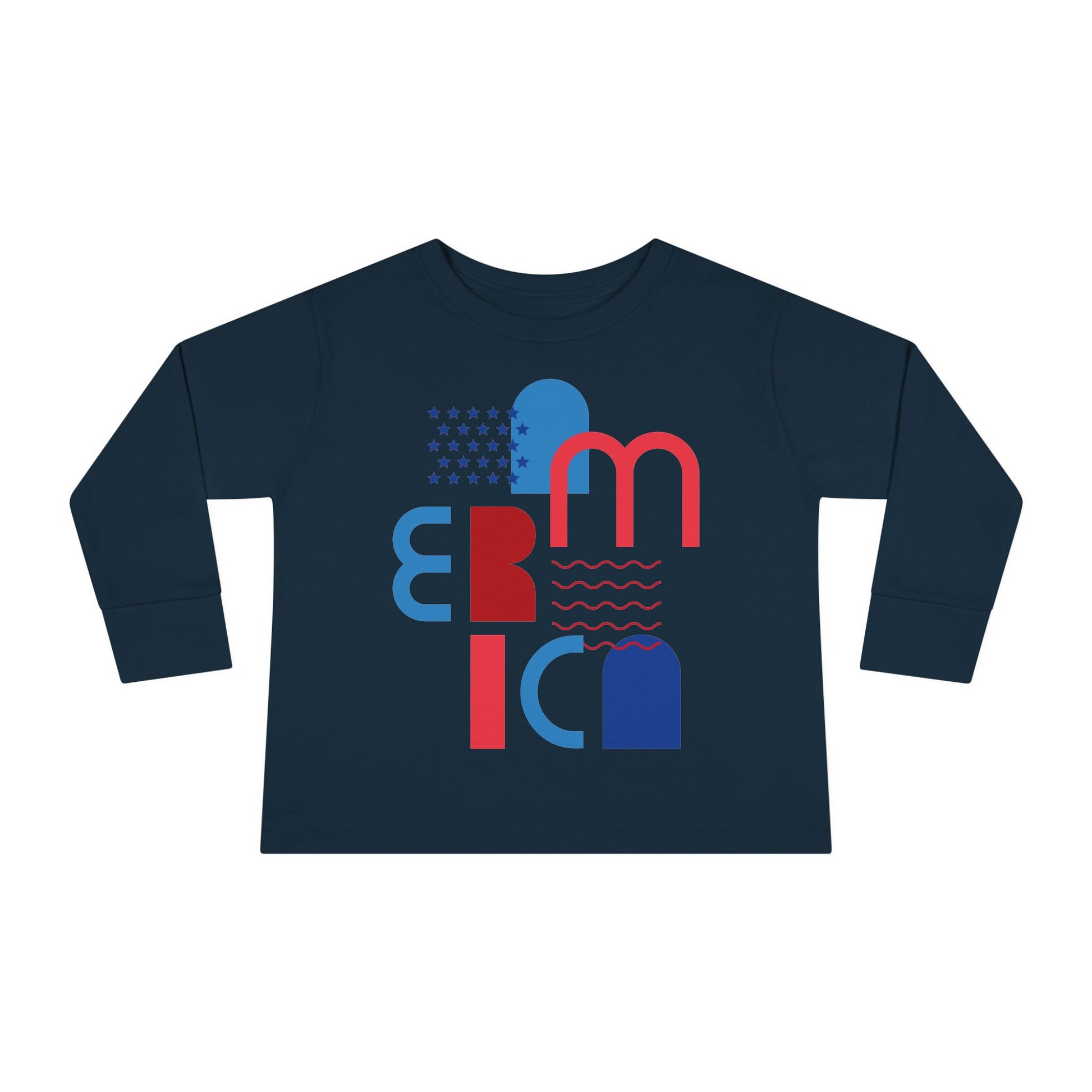 Toddler Tee — Modern 'America' Patriotic Graphic Long Sleeve