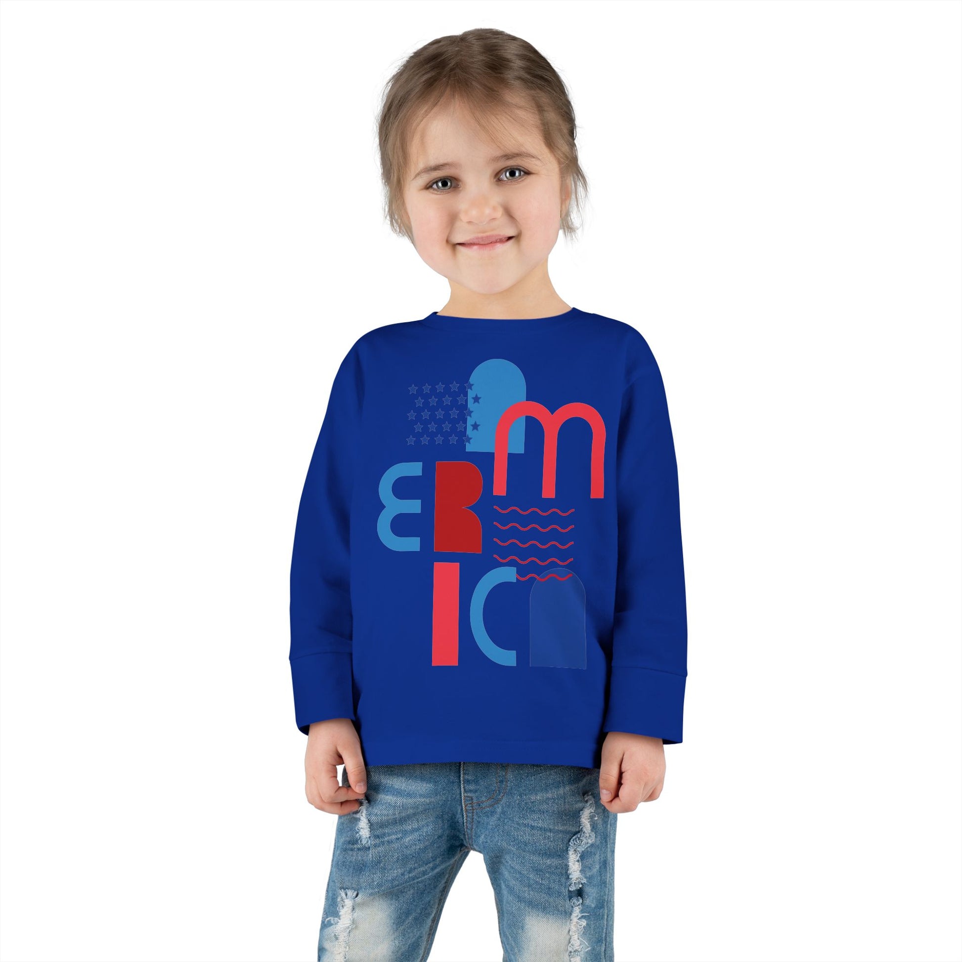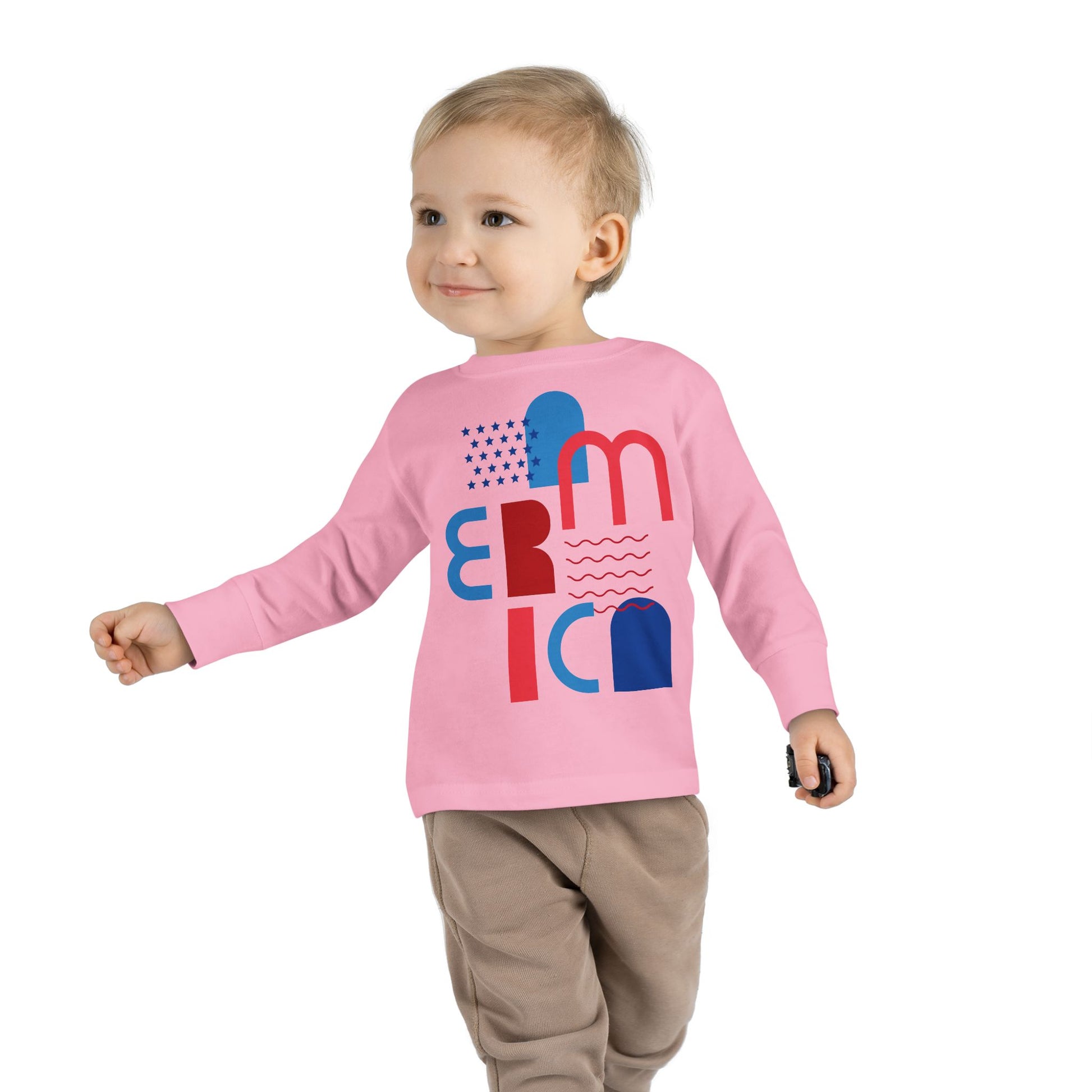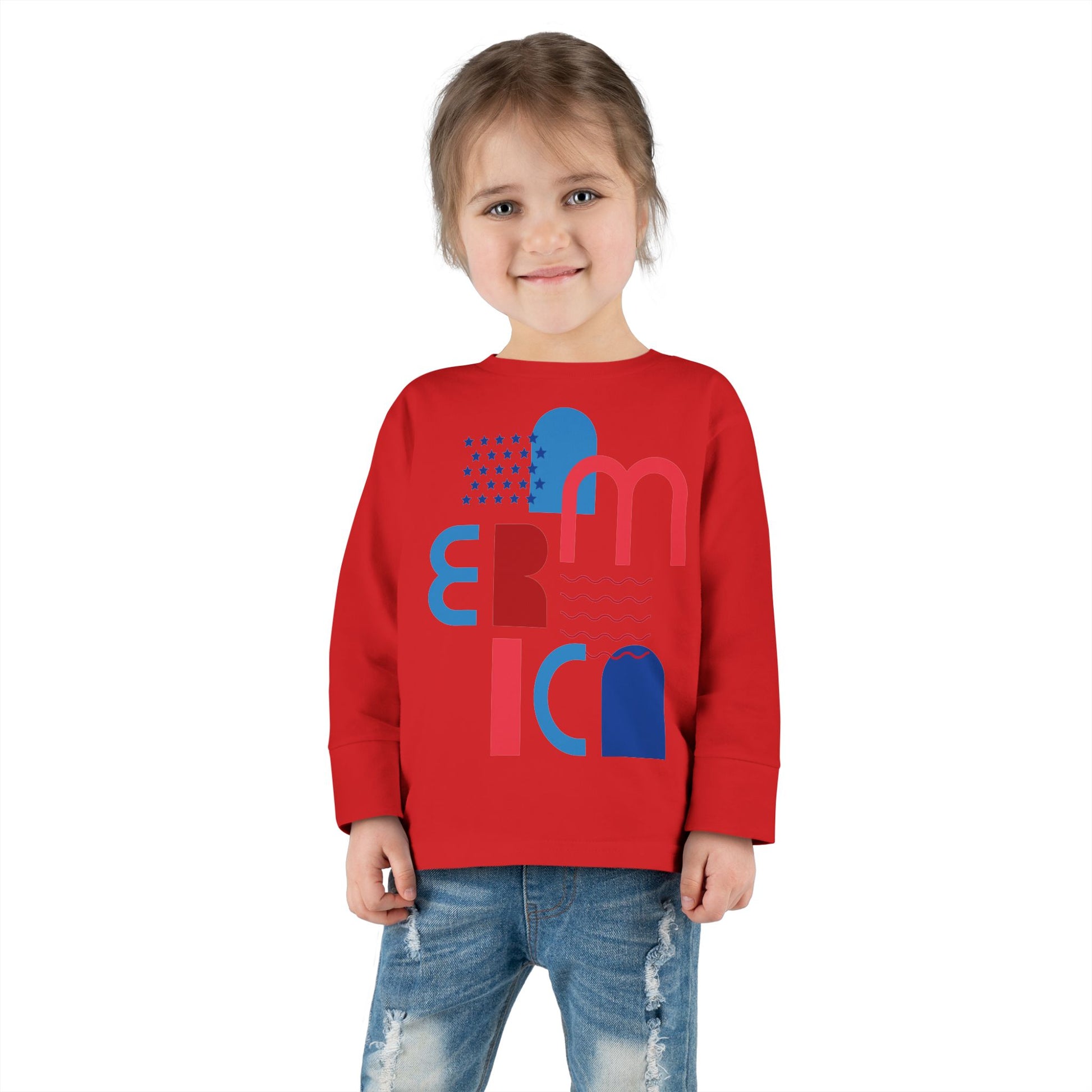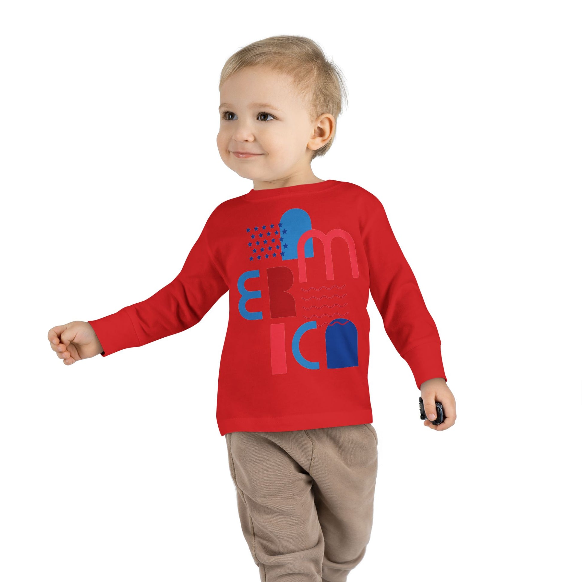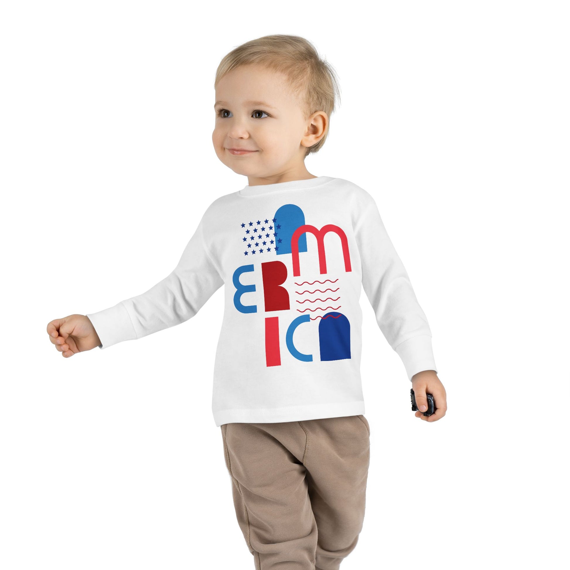 Toddler Tee — Modern 'America' Patriotic Graphic Long Sleeve