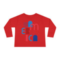 A bright, playful long-sleeve tee designed for little ones who love bold shapes and color. Soft, lightweight fabric keeps active toddlers comfortable while the modern graphic — abstract letterforms and geometric marks in patriotic red and blue — adds a stylish, artful touch to everyday outfits. Short, simple sentences paint the mood: sunny park days, crayons on the kitchen table, and tiny hands reaching for adventure. The fit moves with them: roomy through the body and sleeves, with ribbed cuffs that hold their shape after wash. Wear it on casual family outings, summer evenings that still need a layer, or low-key celebrations where comfort and color matter most. The tear-away label and durable neck tape make dressing faster and fuss-free for busy parents.